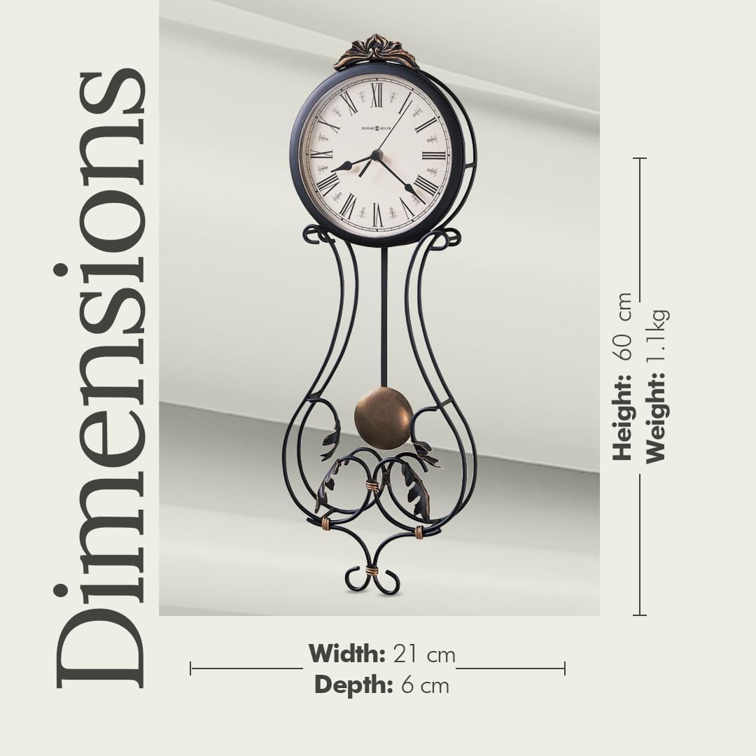 • TIMELESS ELEGANCE: The Paulina Wall Clock features an antique gold-finished pendulum bob, suspended on a charcoal gray pendulum for a touch of vintage sophistication. Its beautifully crafted wrought iron design with decorative leaves enhances any space. Perfect for adding a stylish and traditional charm to your home, office or living room, this timepiece effortlessly blends timeless design with modern functionality.