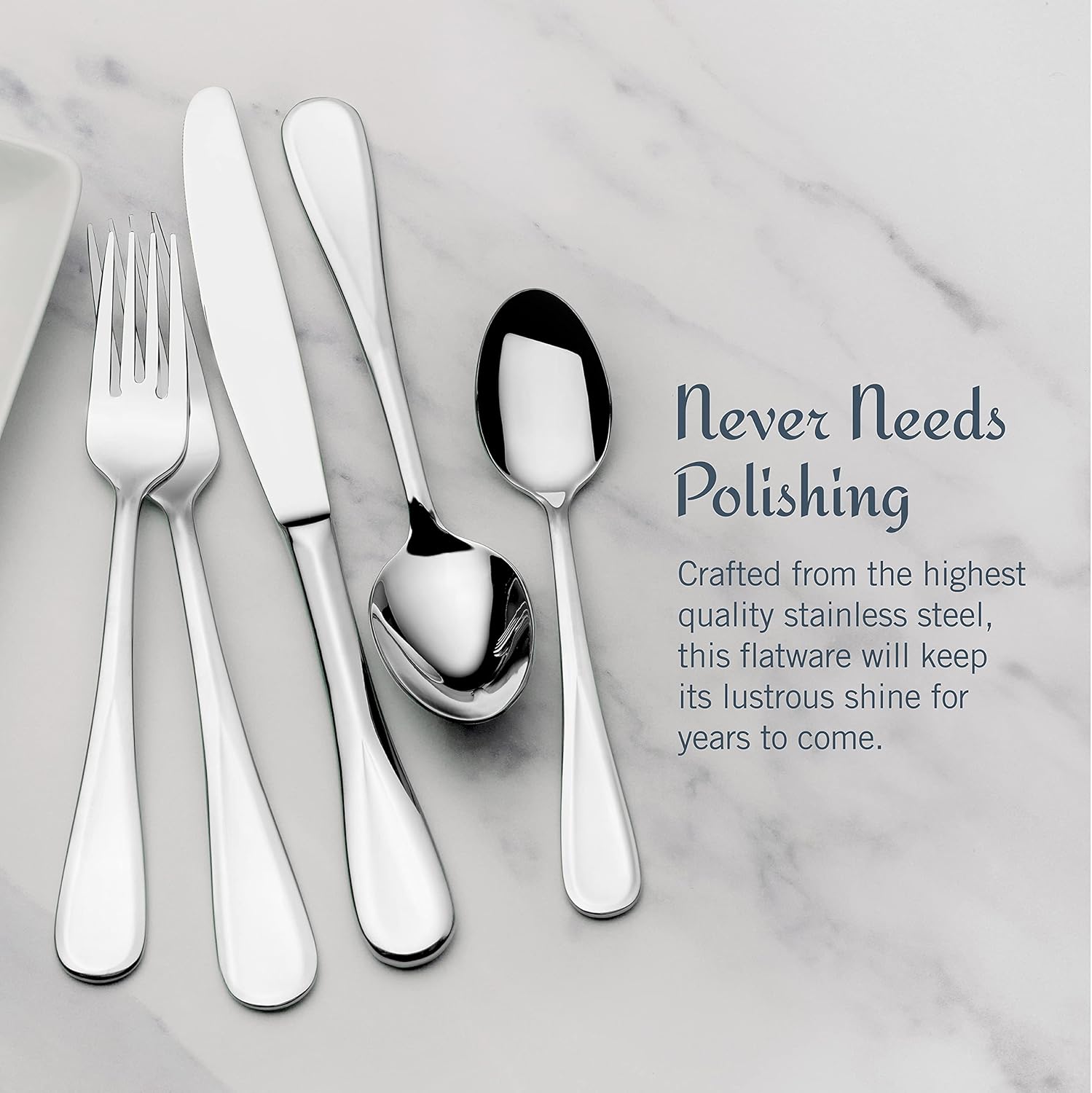 Mikasa Bravo 65-Piece Flatware Set for 12, 18/10 Stainless Steel Silverware with Full Service, Includes Forks, Knives, Spoons, and Serving Utensils