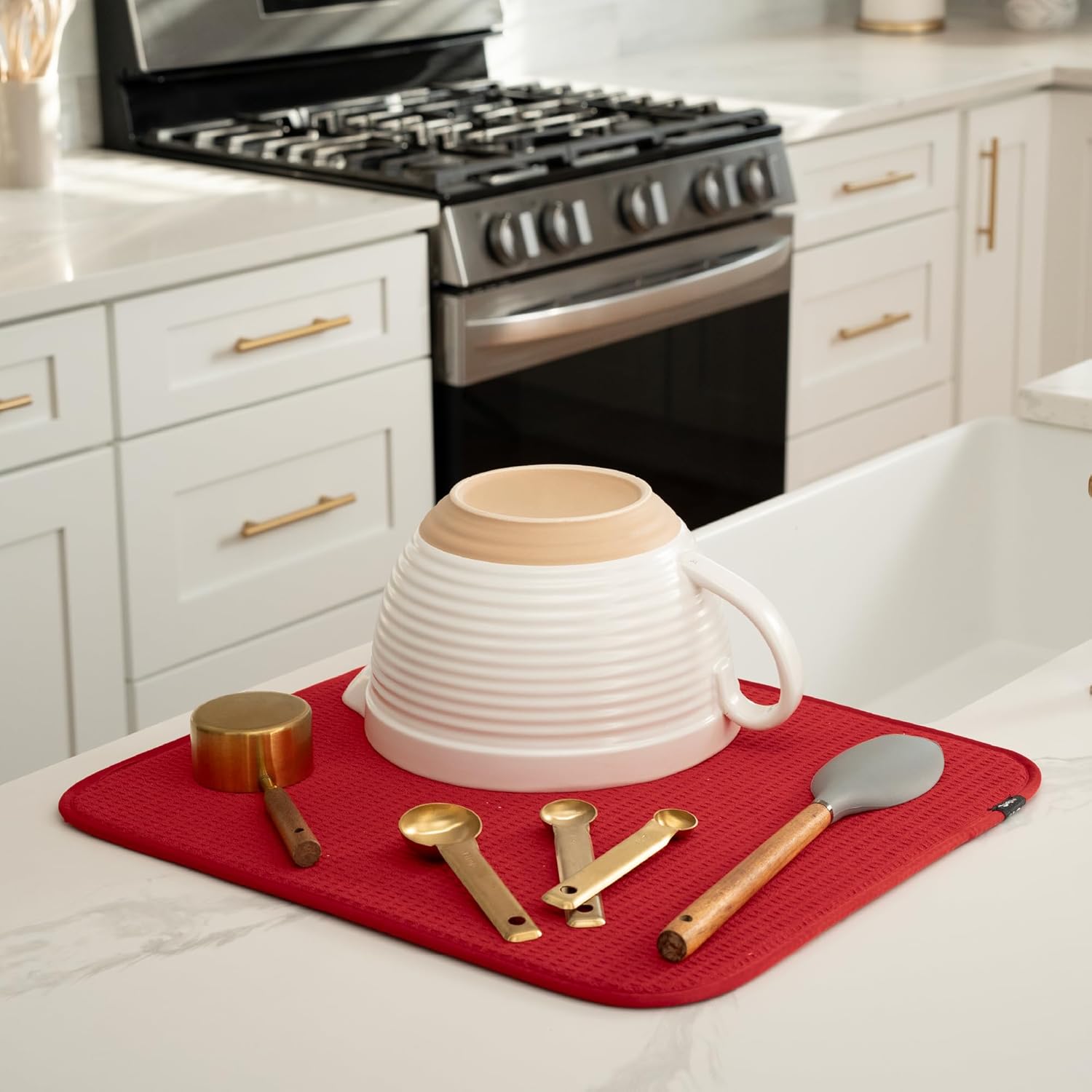 - Dish drying mats for kitchen counter are reusable, machine washable, and easy to store for kitchen organization; durable construction will not chip or break like a stone dish drying mat for kitchen