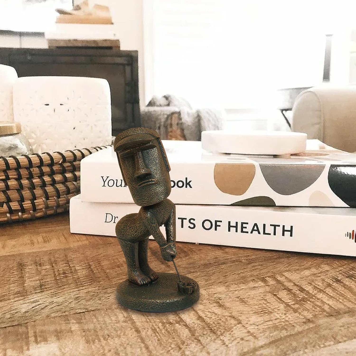 Moai Statue Decor - 6 Inch Easter Island Oranment Resin Stone Decoration for Room Accessories Antique Sculpture for Office Desktop (Play Golf)