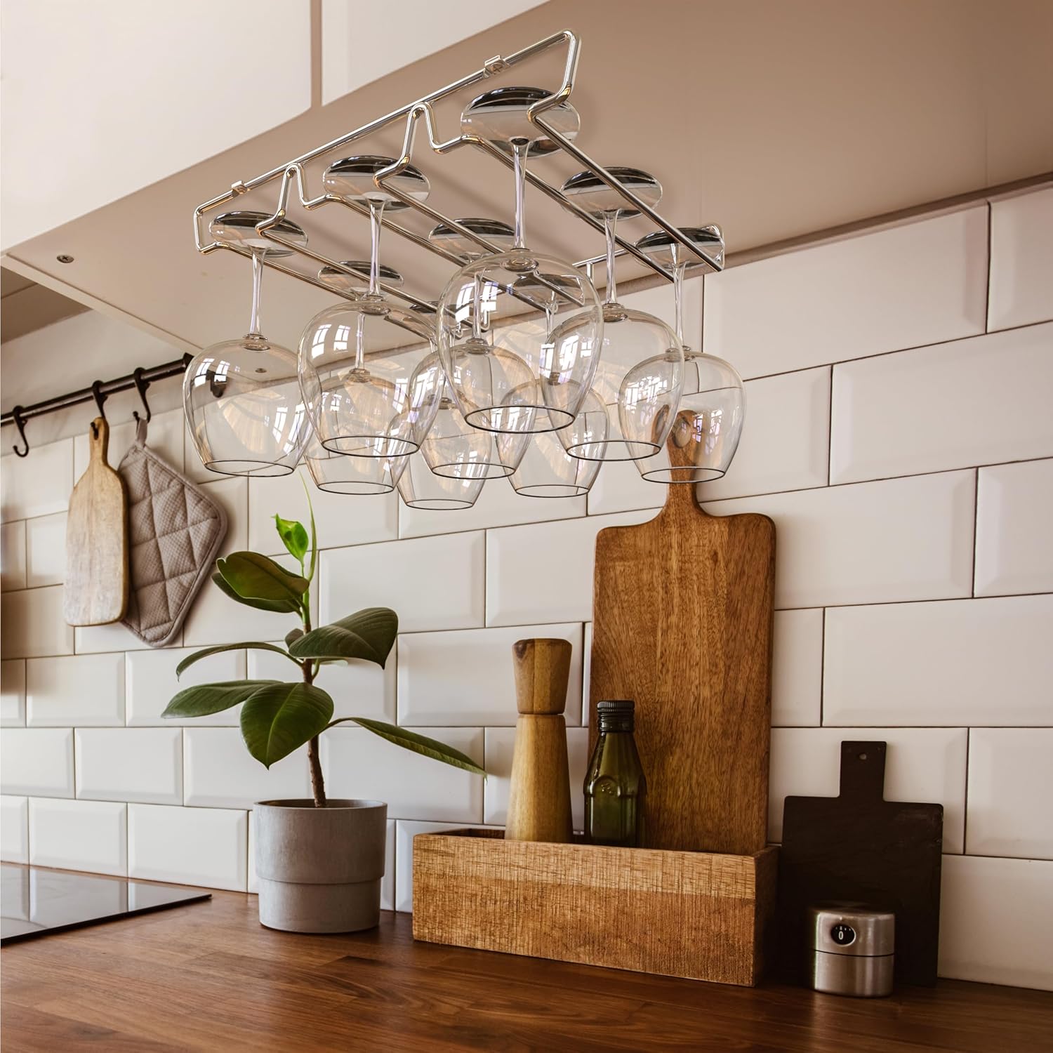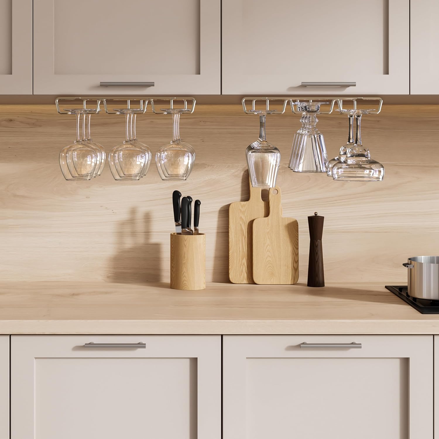 - Capable to install side by side to hold more stemware.