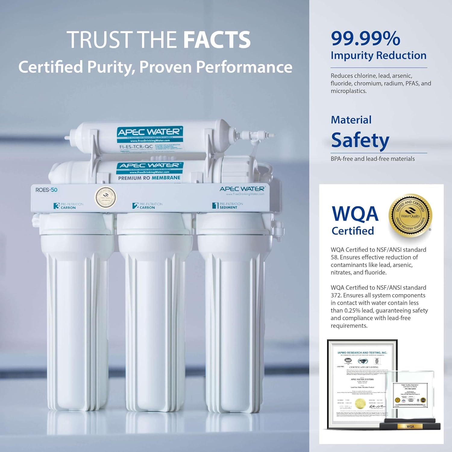APEC Water Systems ROES-50 Essence Series Top Tier 5-Stage WQA Certified Ultra Safe Reverse Osmosis Drinking Water Filter System