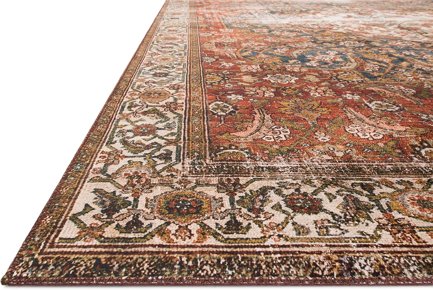 Loloi Layla Collection LAY-05 Ocean/Multi 3'-6" x 5'-6" .13" Thick Accent Rug, Soft, Durable, Vintage Inspired, Distressed, Low Pile, Non-Shedding, Easy Clean, Printed, Living Room Rug
