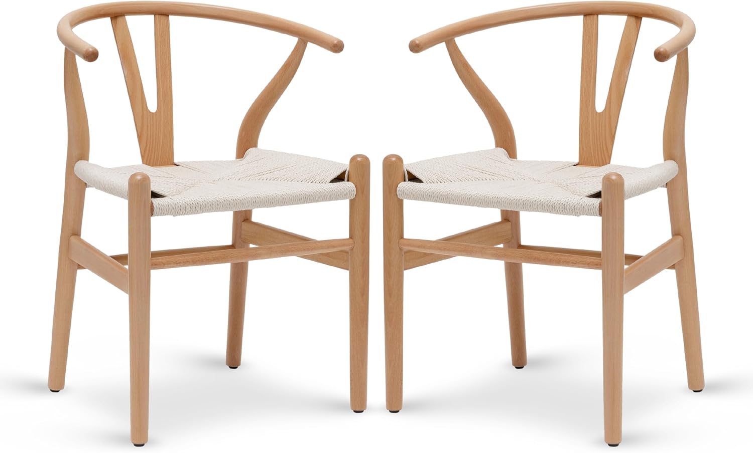 POLY & BARK Weave Dining Chairs – Mid-Century Modern Wishbone Dining Chairs with Arms, Solid Wood Frame, Indoor Use – Natural – Set of 2 - Ideal for Dining Room, Kitchen or Stylish Accent Setting