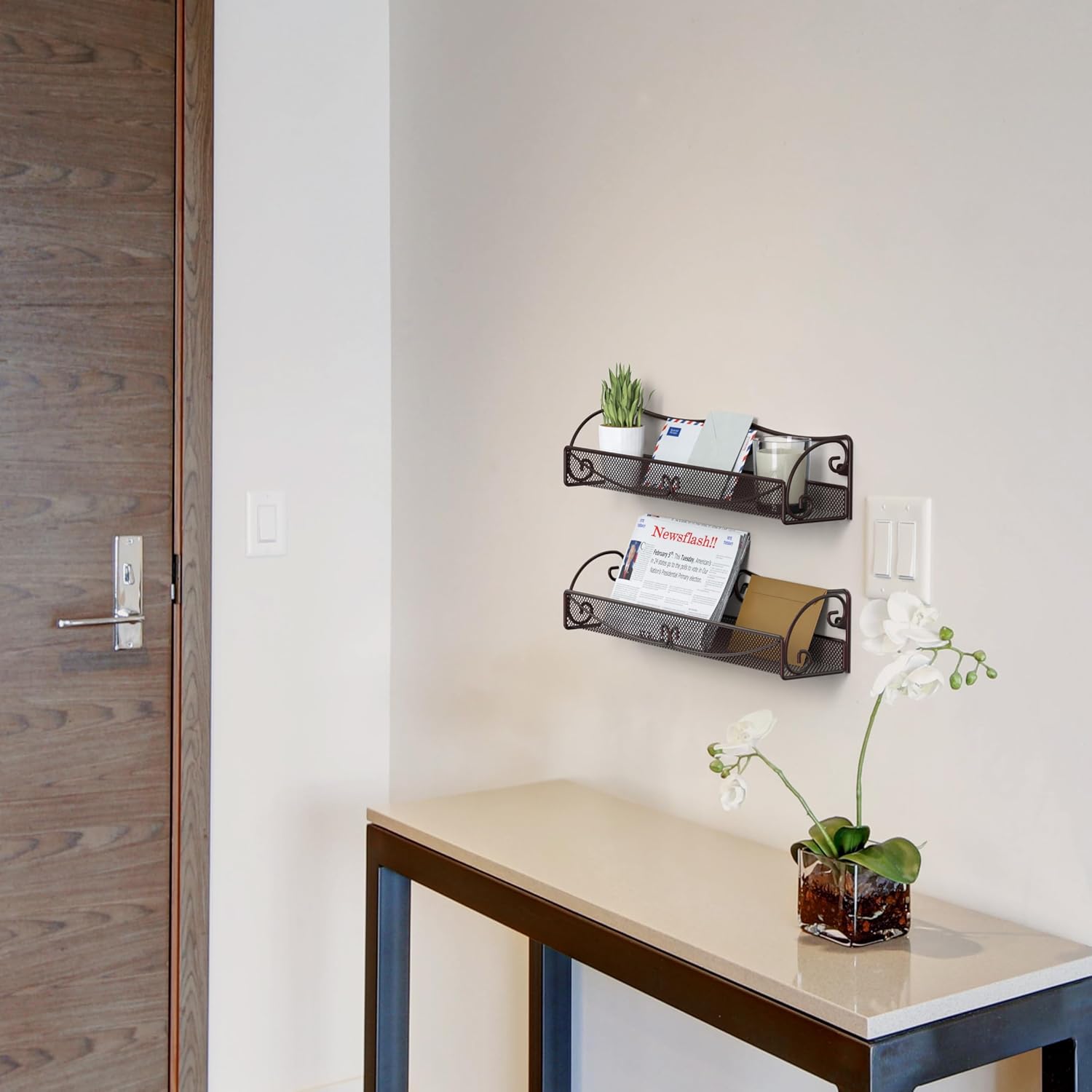 Deco Brothers Wall Mounted Single Tier Mesh Hanging Spice Rack, Set of 2, Bronze
