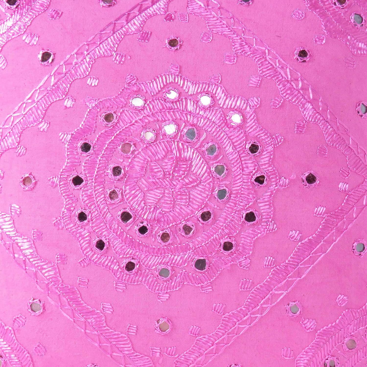 Eyes of India Embroidered Decorative Boho Throw Pillow Cover with Mirrors, Handmade Bohemian Accent Cushion Case for Sofa Couch Bedroom Living Room (Pink, 16" x 16")