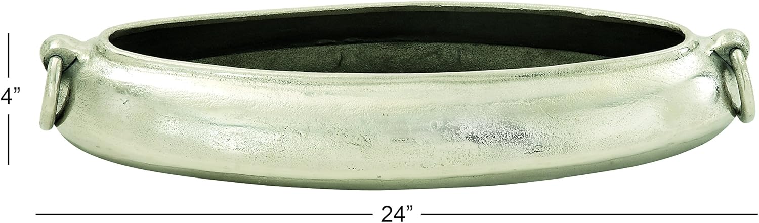 Deco 79 Aluminum Metal Decorative Decorative Bowl Decorative Container with Ring Handles, Decorative Keepsake Box 24" x 9" x 4", Silver
