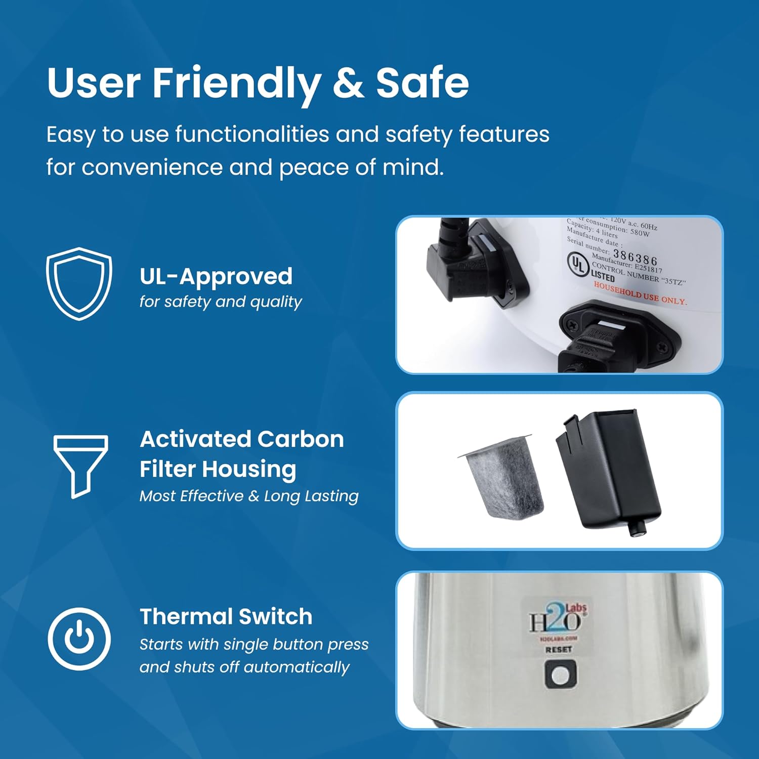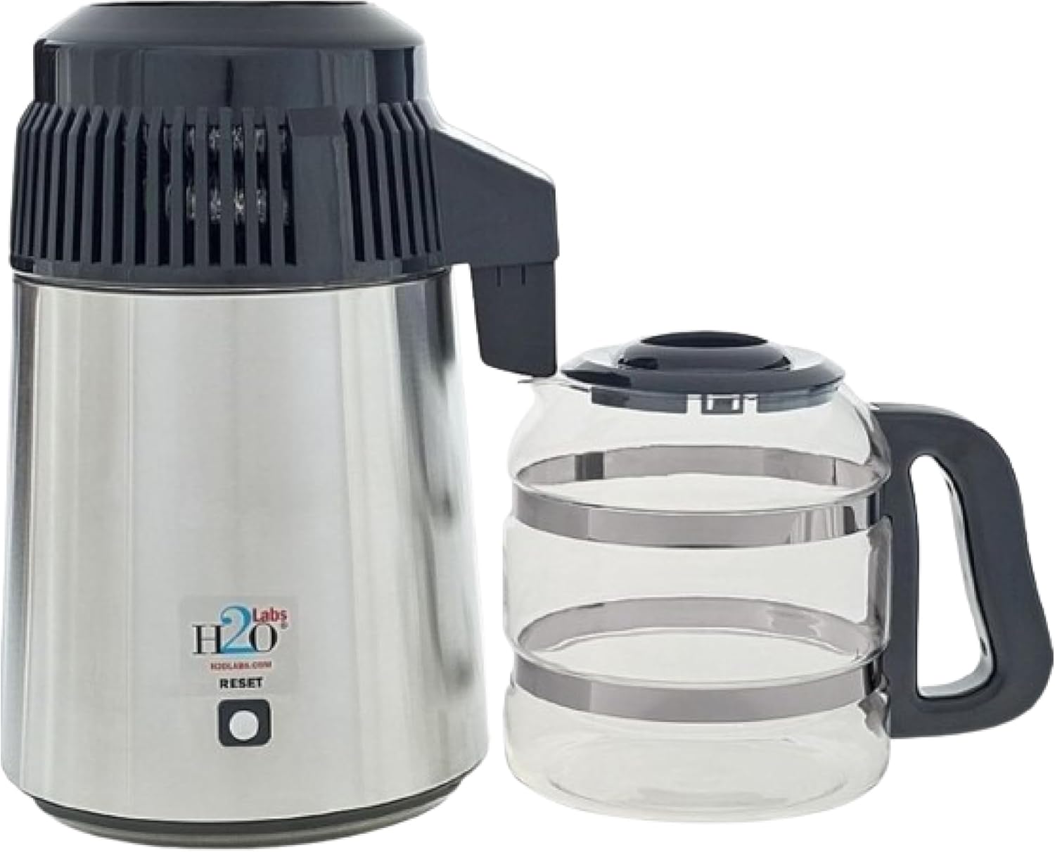 - H2o Labs Best-in-Class Models: Our most popular countertop Model 300SS water distiller for home & office has a stainless-steel exterior, evaporator & condensing coil, and it has a top-quality 1 gallon glass carafe with ergonomic “Easy Grip” handle.
