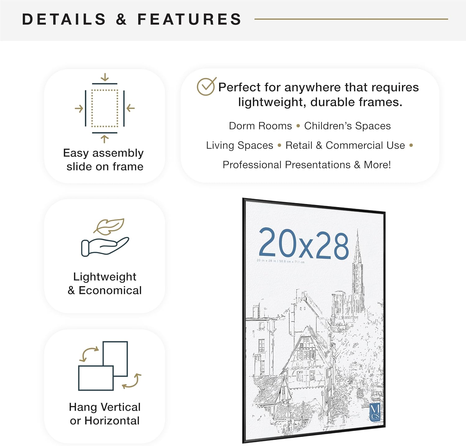 MCS Original Poster Frame 20x28 Black Lightweight Vertical & Horizontal Wall Hanging Large Picture Frame for Posters, Art Prints & Gallery Wall (1-Pack)