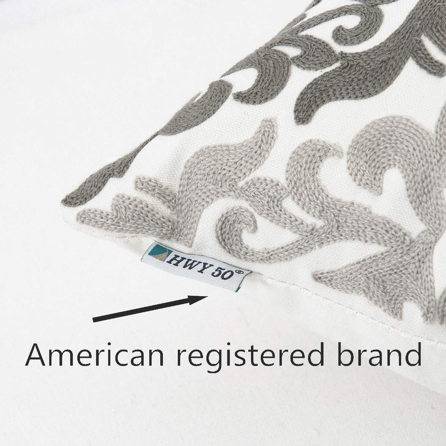 HWY 50 Grey Gray Decorative Throw Pillow Covers 18x18 Inch (1 Piece), Embroidered Cotton Farmhouse Cushion Cover Pillow Case for Sofa Couch Living Room Bed Bedroon, Floral Geometric