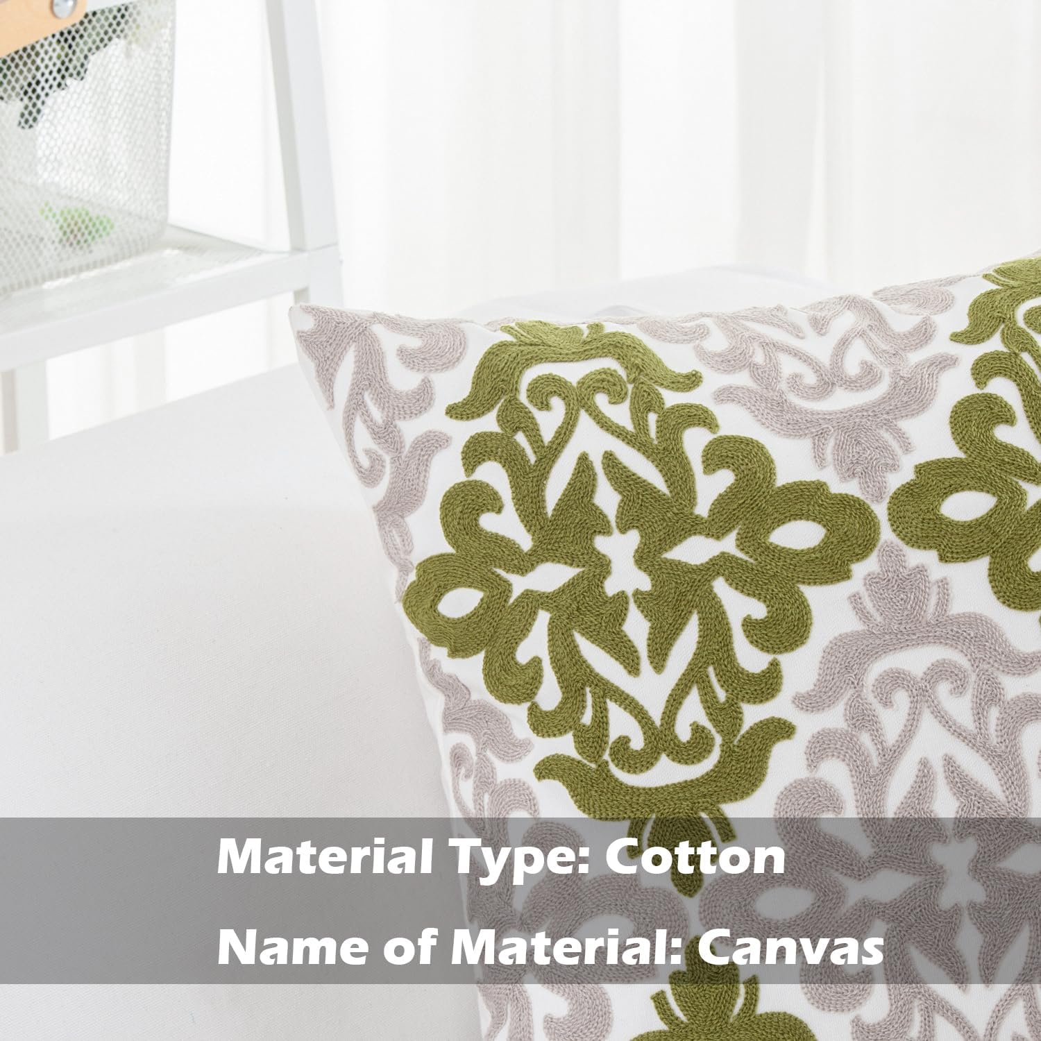 - Size & Material: This 18 x 18 inch (18 by 18) square throw pillow cover is made of 100% thick cotton canvas for durability. The crisp white fabric is soft yet sturdy, featuring beautiful single-sided embroidery for an elegant touch
