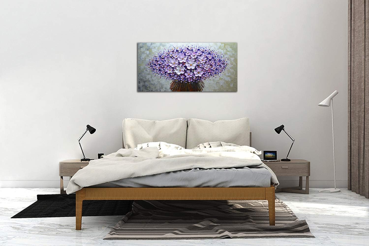 V-inspire Art, 24x48 Inch Modern Canvas Art Textured Purple Flower Oil Painting Contemporary Artwork Floral Hangings Stretched and Framed Ready to Hang Wall Decoration Abstract Painting