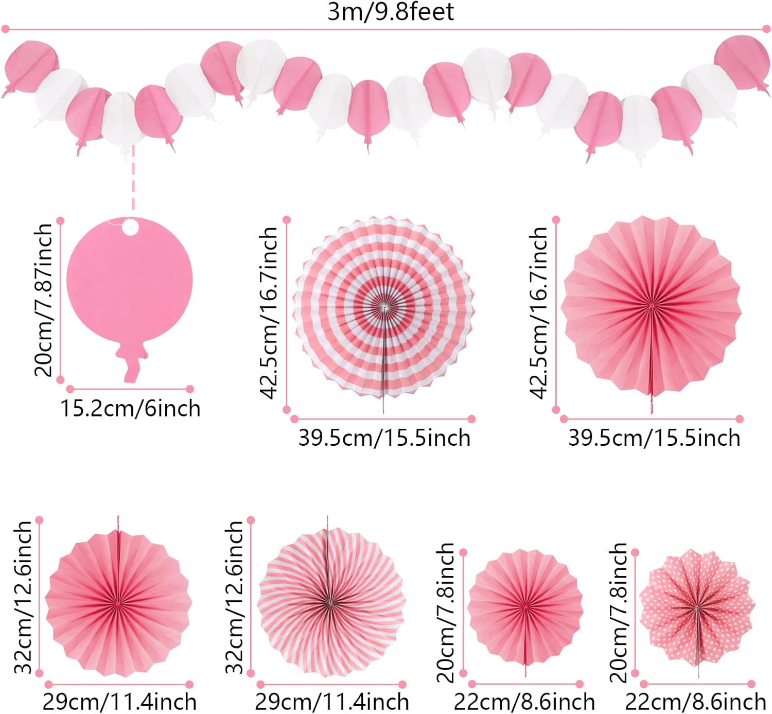 Party Decorations, Pink Papar Fans Pompoms Garlands for Women Girls Mothers Day Bachelorette Wedding Birthday Baby Showers Valentine's Day Party Decorations