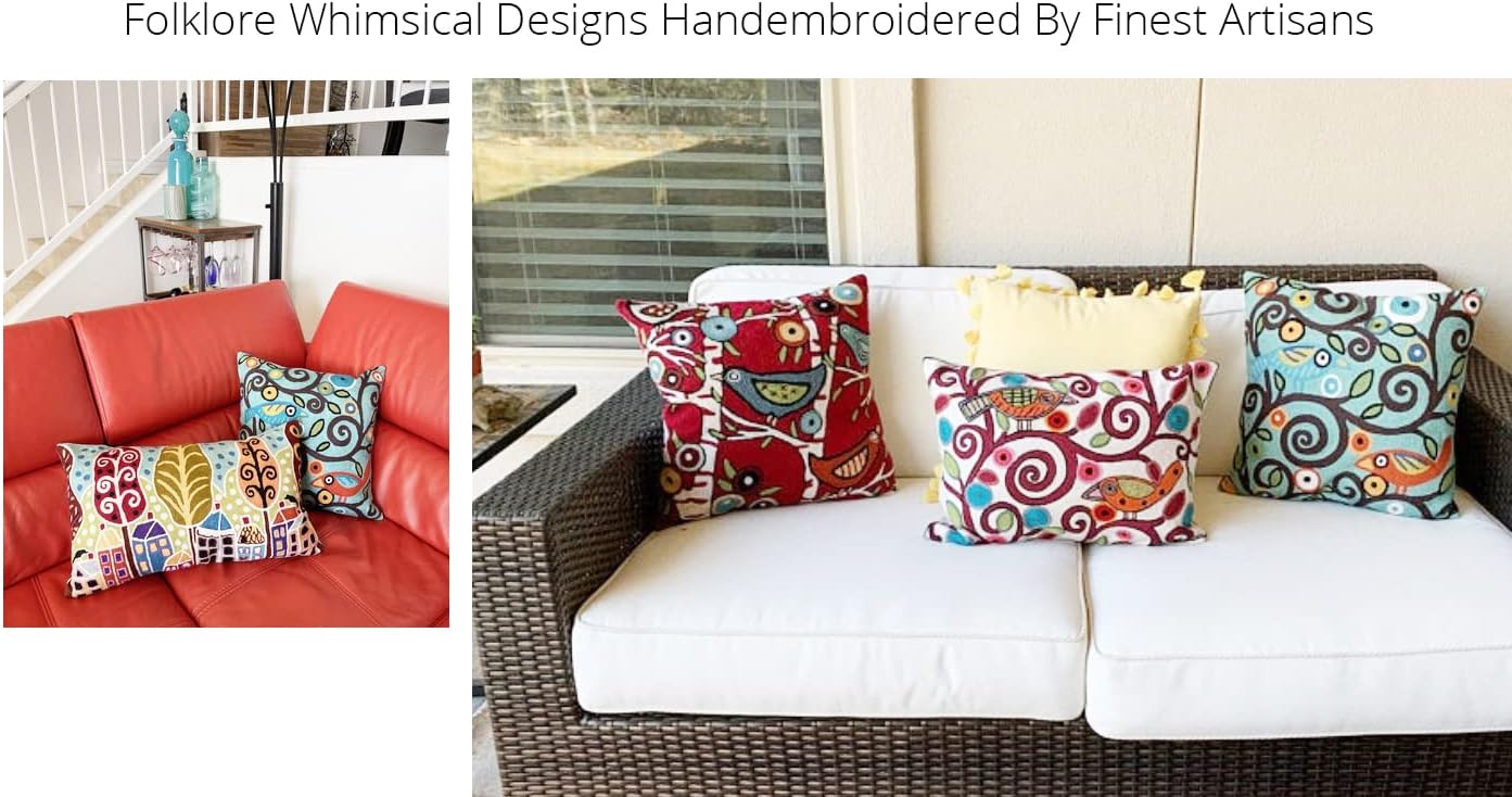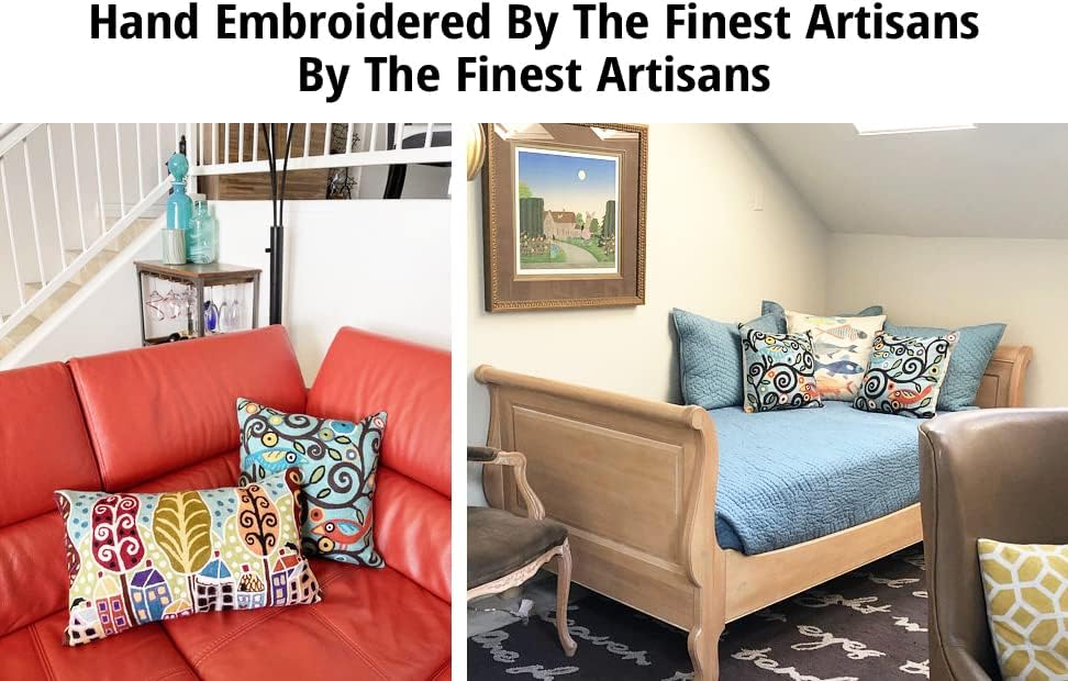 - π MULTIPURPOSE USES: Choose these pillow covers to decor your home, you will win a lot of compliments from your families and friends. These hand embroidered floral pillow covers will be the perfect addition to decorate your couch, sofa, bed, chair, loveseat, living room, bed room, floor, porch, outdoors, bench, office etc. Soft to the touch and crisply bright and bold to the eye, these decorative floral pillows can be used with virtually any type of furnishings.