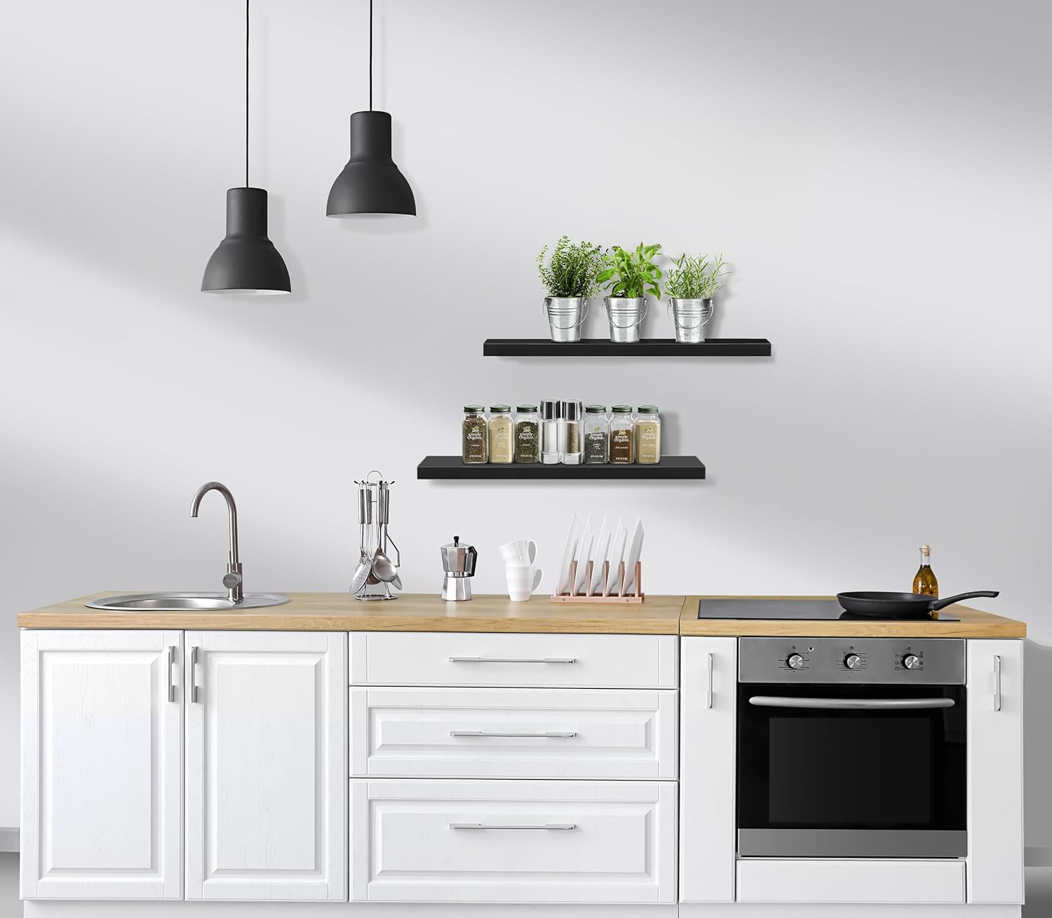 - Versatile & Functional Floating Wall Shelves: Install these floating shelves in the bedroom or bathroom to hold beauty/hair products - Place your wall shelf under a mirror in the entryway or exhibit family photos gallery style in a long hallway - Use as bathroom shelf, book shelf for wall, wall decor for bedroom, over the toilet shelf, kitchen floating shelves, floating nightstand, kitchen decor, living room wall decor, display shelf, and more
