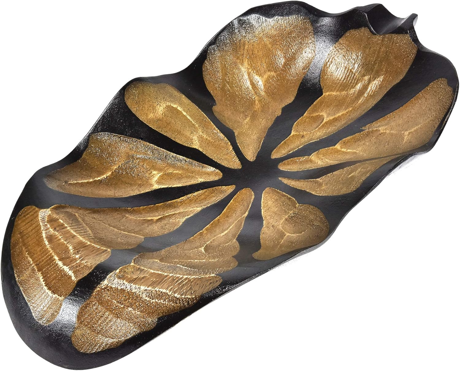 AeraVida Nature Inspired Handcarved Curvy Leaf Shaped 2-Tone Stained Wooden Serving Bowl or Dish for Tropical Chic Home Décor & Kitchen Accessories