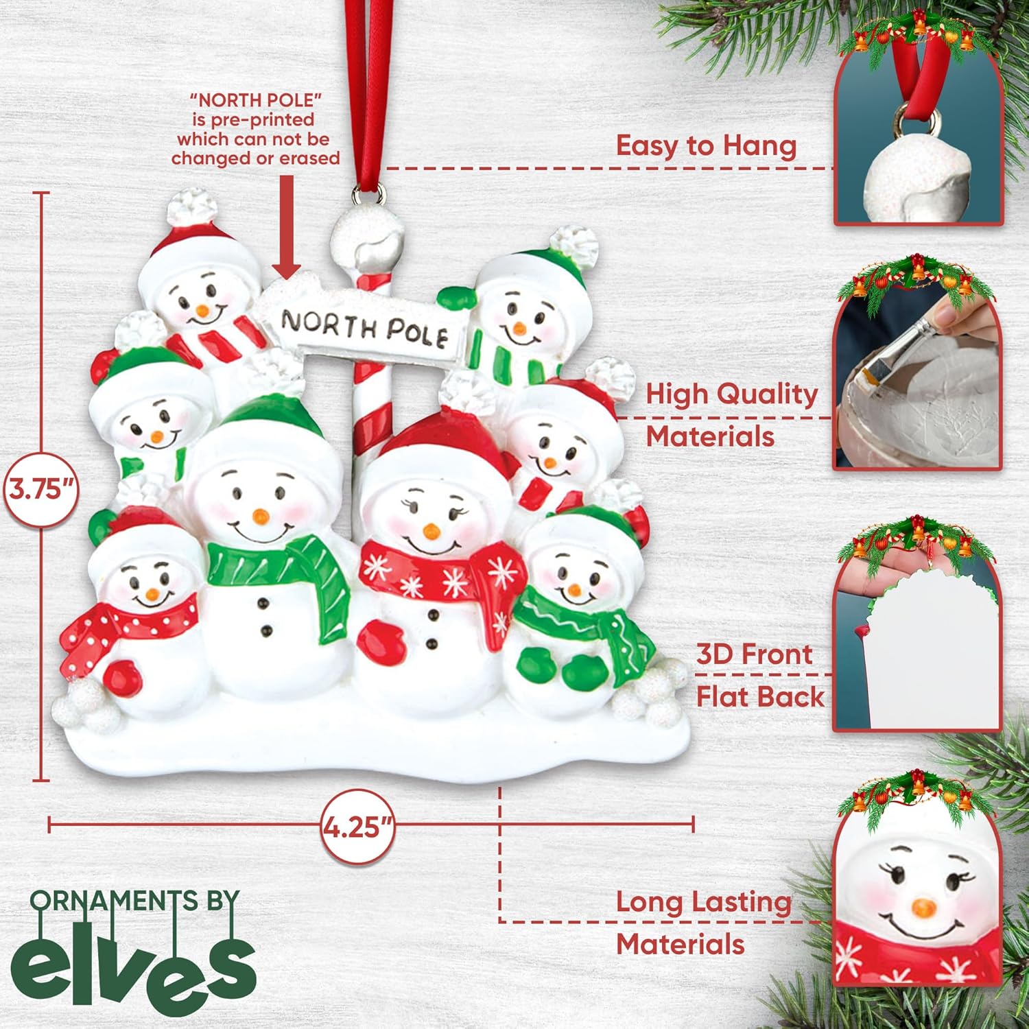 - 🎁 Celebrate Your Family of 8: Mark a joyful milestone with a personalized family of 8 Christmas ornament 2025. Whether it’s your first year as eight or part of a cherished tradition, this keepsake honors your growing bond and tells your story with warmth, love, and festive cheer. This eight snowman North Pole ornament features green and red scarf winter outfits, a smiling snow family Christmas decor, striped pole and snowball base design, and is the perfect holiday crowd in frosty scene keepsake.
