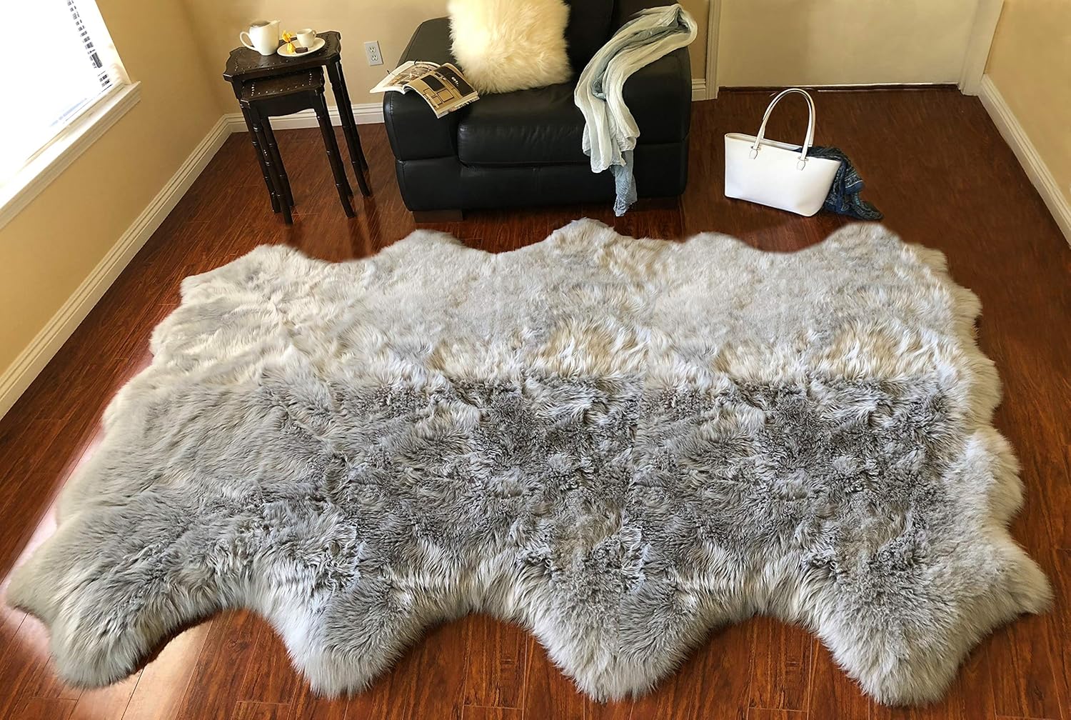 - MULTIPURPOSE DESIGN REAL SHEEPSKIN RUG: The sheepskin rugs are multipurpose and used as seat covers rug, couch pads, and area carpets. The stain-resistant, latex-free rug is designed for daily indoor use faux fur that is a super soft material rug under your feet. This free shape silky shag rug that works with a wide variety of decors great addition for kidβs room rug.