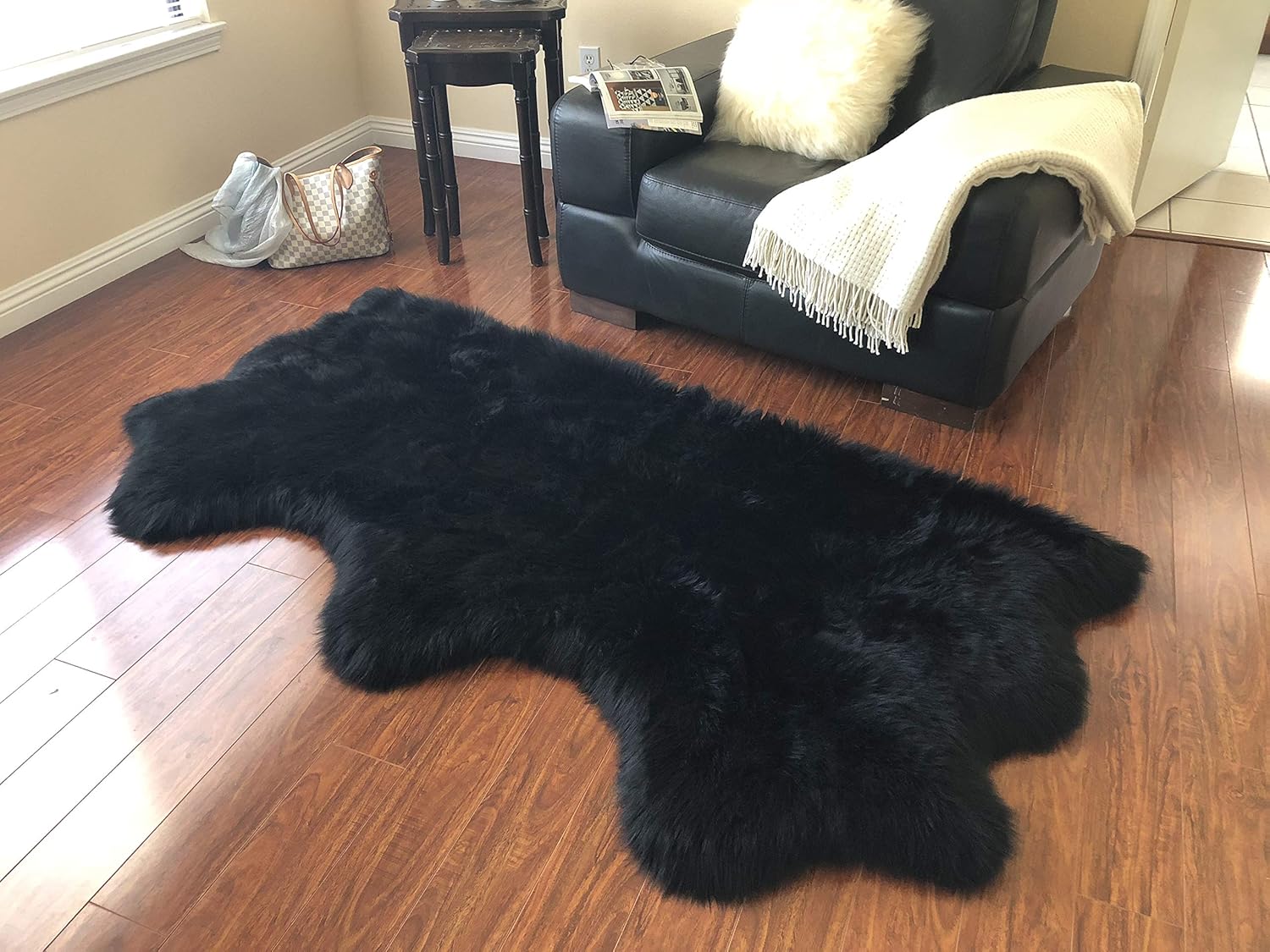 - MULTIPURPOSE DESIGN REAL SHEEPSKIN RUG: The sheepskin rugs are multipurpose and used as seat covers rug, couch pads, and area carpets. The stain-resistant, latex-free rug is designed for daily indoor use faux fur that is a super soft material rug under your feet. This free shape silky shag rug that works with a wide variety of decors great addition for kidβs room rug.