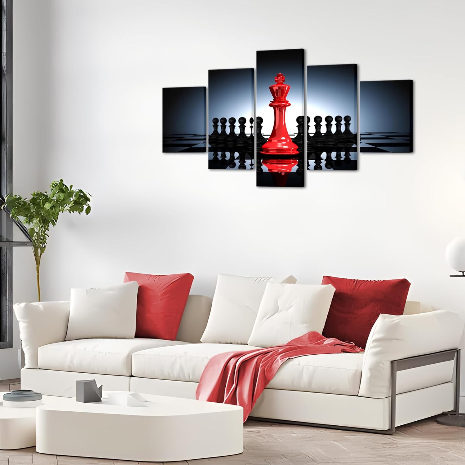 iHAPPYWALL Large 5 Pieces Modern Black And Red King And Knight Chess Pictures Print Canvas Wall Art for Home Chess Game RoomLiving Room Decor Ready To Hang