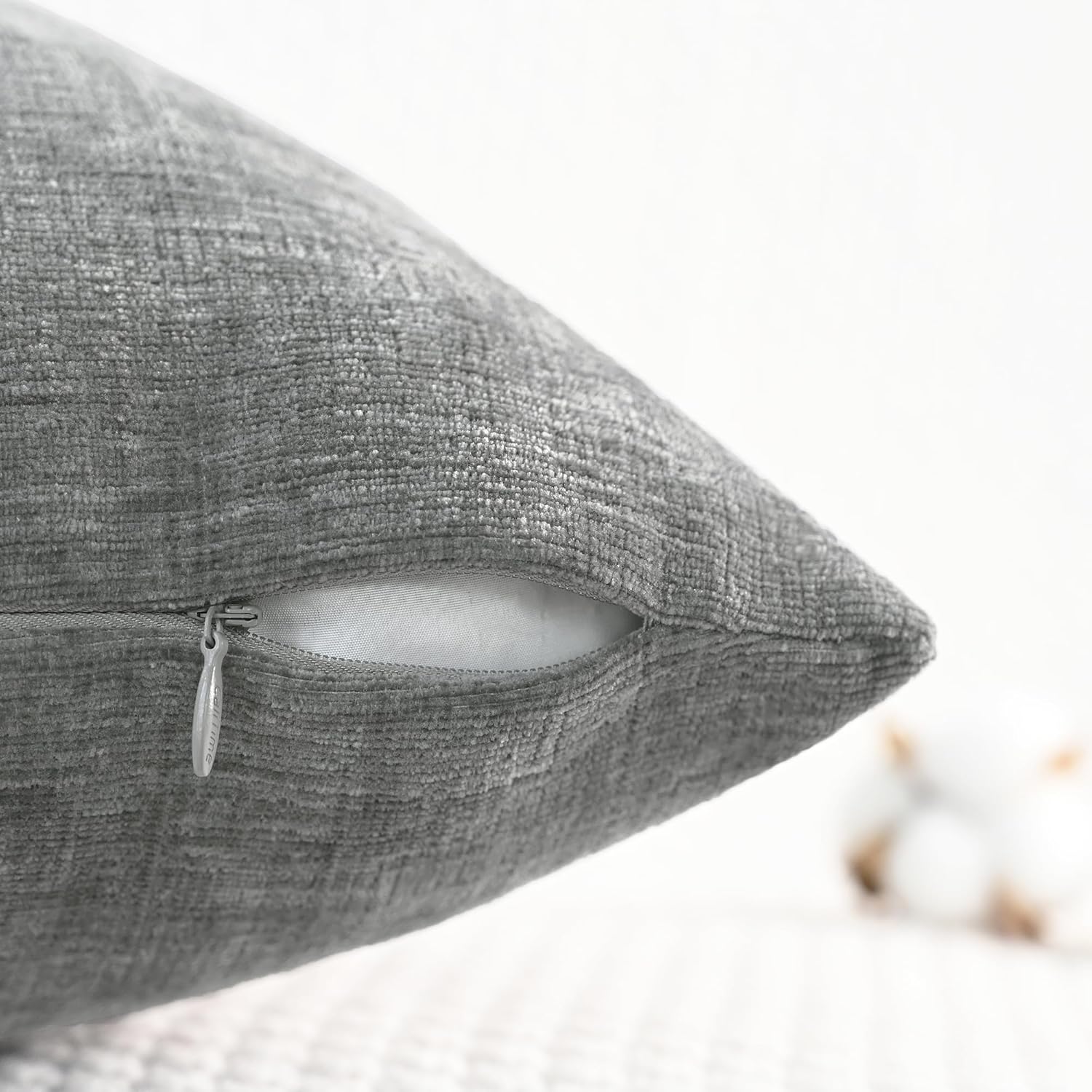 CaliTime Throw Pillow Covers Decorative 16 X 16 Inches Pack of 2 Cozy Chenille Cushion Cases for Couch Sofa Bed Living Room Home Medium Grey