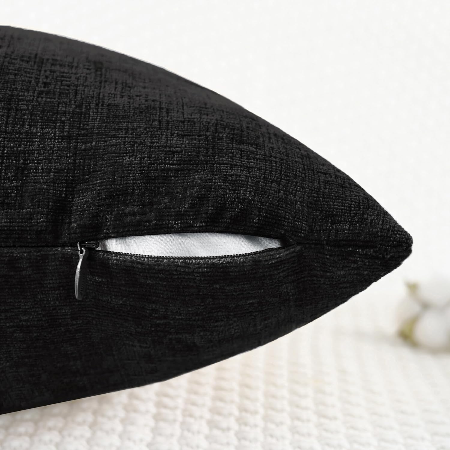 CaliTime Throw Pillow Covers Decorative 22 X 22 Inches Pack of 2 Cozy Chenille Cushion Cases for Couch Sofa Bed Living Room Home Black