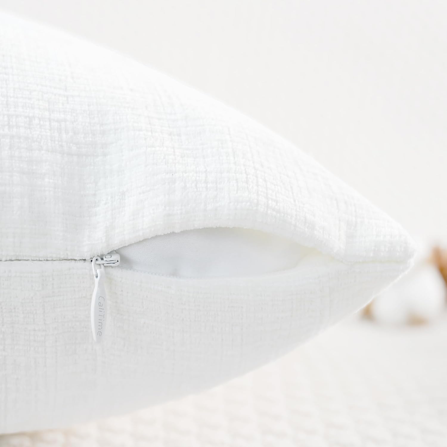CaliTime Throw Pillow Covers Decorative 16 X 16 Inches Pack of 2 Cozy Chenille Cushion Cases for Couch Sofa Bed Living Room Home True White