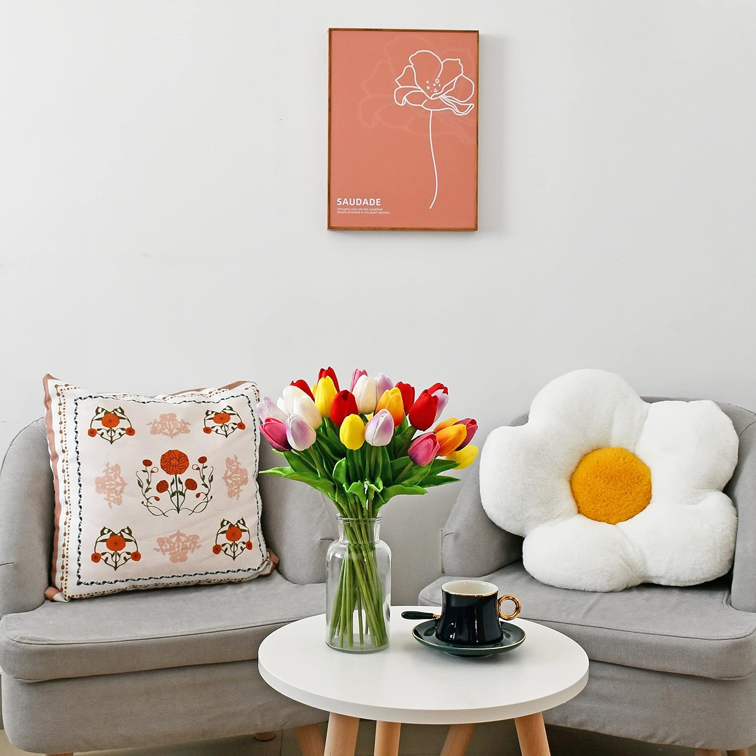 - All-Season Beauty with Gentle Color Care.These tulips bring timeless charm to Easter, Mother’s Day, weddings, or year-round décor. To preserve the soft tones of light-colored flowers—especially white—we recommend avoiding direct sunlight for long-term (6+ months) display, as PU petals may naturally yellow over time.