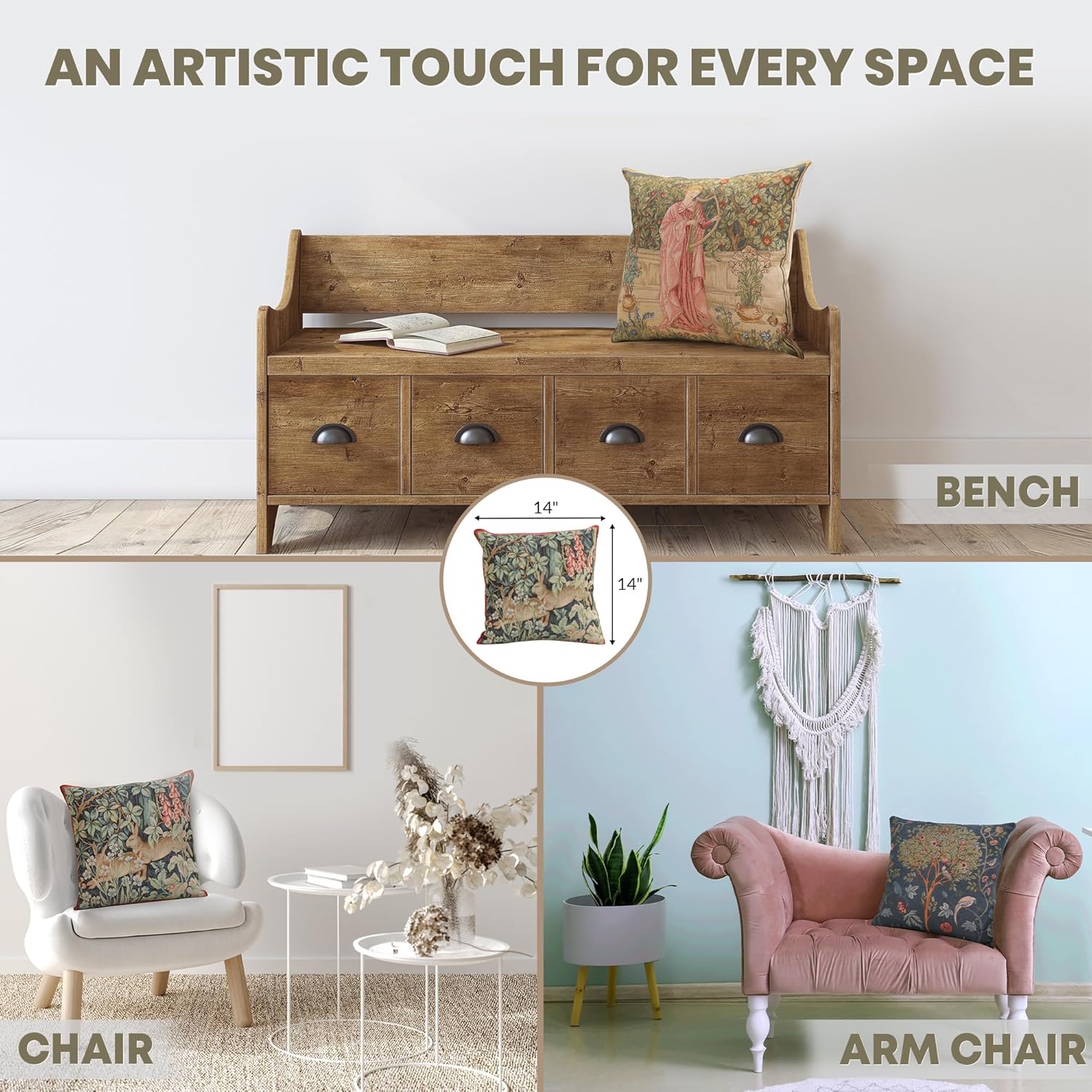 - Timeless Durability: Elevate your decor with our skin-friendly William Morris pillow covers 14βX14β, where quality and style come together. A sturdy hidden zipper ensures easy pillow insertion/removal, while the overlock stitches prevent seam ripping. Unlike thin printed cushion covers prone to tearing, our decorative pillows for couch with a super-soft backside are crafted with thick premium threads for long-lasting quality. THE PACKAGE INCLUDES A SINGLE TAPESTRY PILLOW COVER WITHOUT AN INSERT