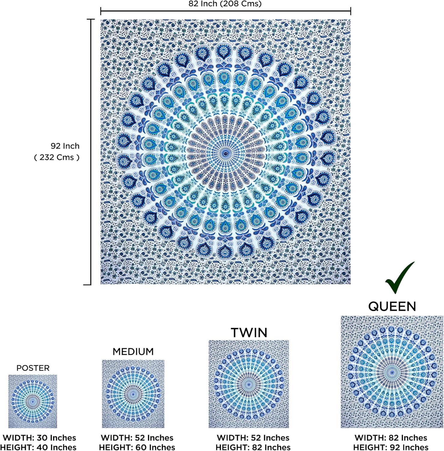- MATERIAL & SIZE : Mandala boho Tapestry is made of 100% cotton fabric, made and printed in India, With hand sewing, easy to hang, the edges are neat and finished and used for both indoor and outdoor purpose, size QUEEN 210 X 220 cm