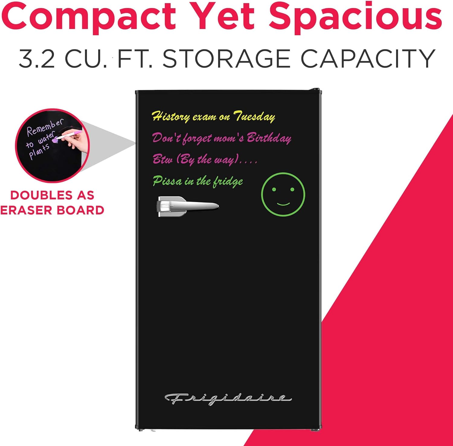 Frigidaire EFR331 Single Door Compact Refrigerator - Adjustable Thermostat Control - Reversible Doors - Front Blackboard, Write and Erase - Ideal for Dorm, Office, RV, Room - Black, 3.2 Cubic Feet