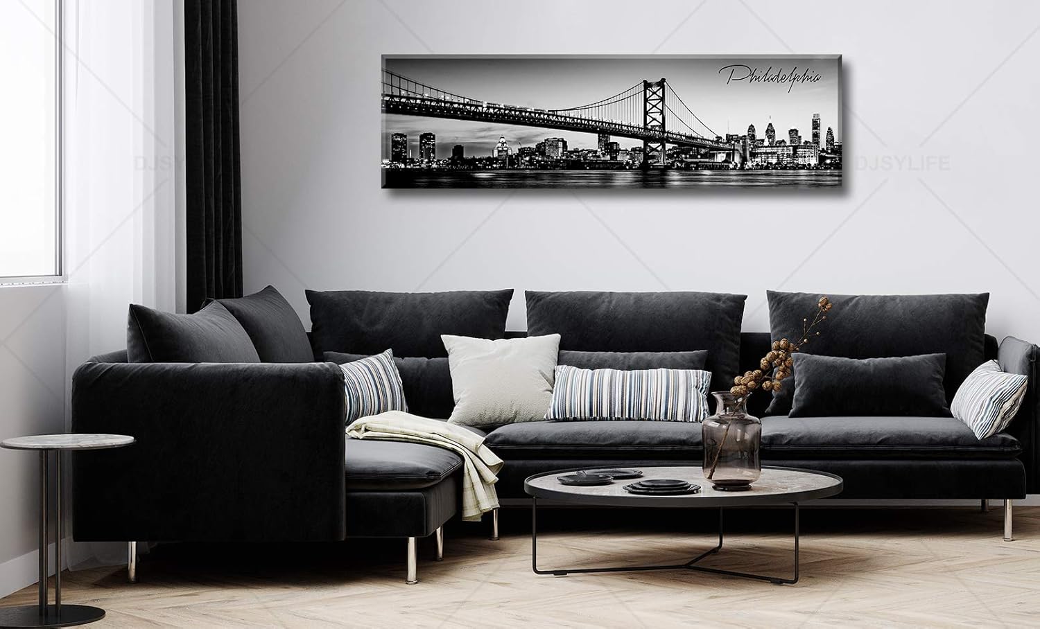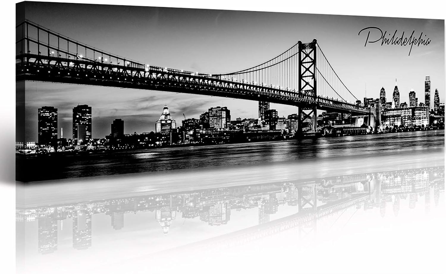 DJSYLIFE- Philadelphia Skyline Wall Art,Black and White Stretched Canvas Wall Art Prints for Bedroom or Office Decoration, Ready to Hang 13.8"x47.3"