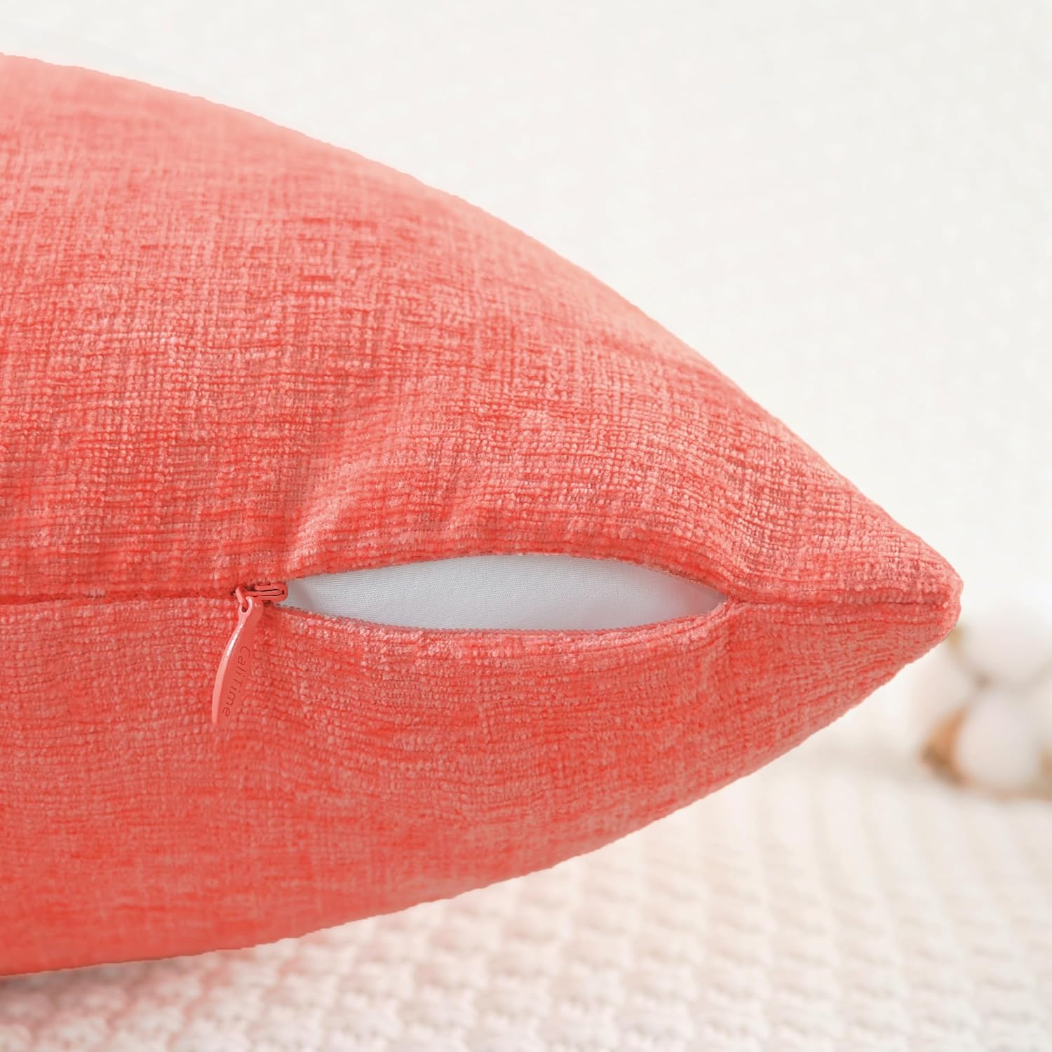 CaliTime Throw Pillow Covers Decorative 16 X 16 Inches Pack of 2 Cozy Chenille Cushion Cases for Couch Sofa Bed Living Room Home Living Coral