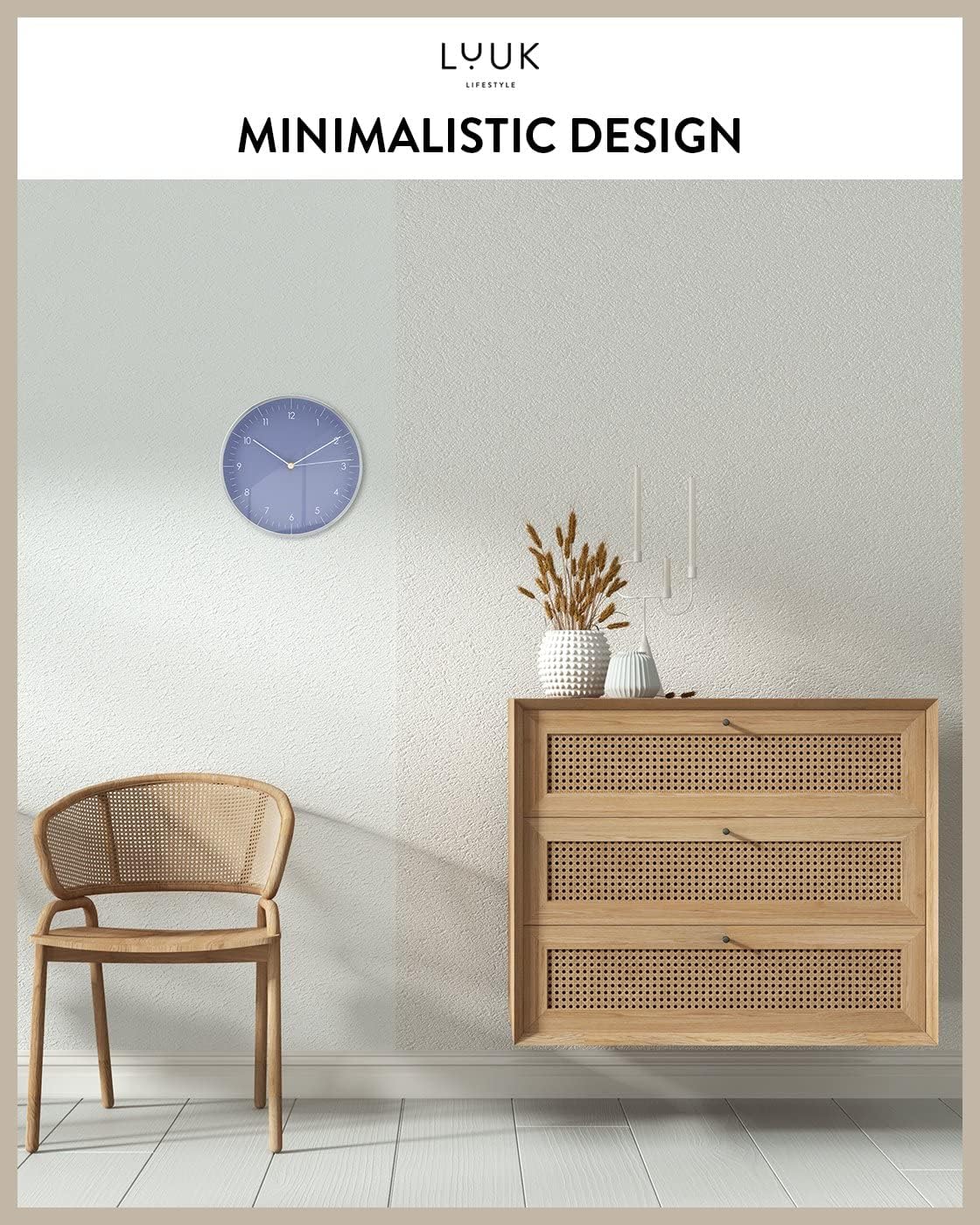 • A STYLE THAT FITS IN WITH ALL INTERIOR STYLES: Our wall clock is suitable for all types of interiors and layouts (as a living room clock, kitchen, hallway, office, bathroom, children's room, etc.) and blends in perfectly with your furniture