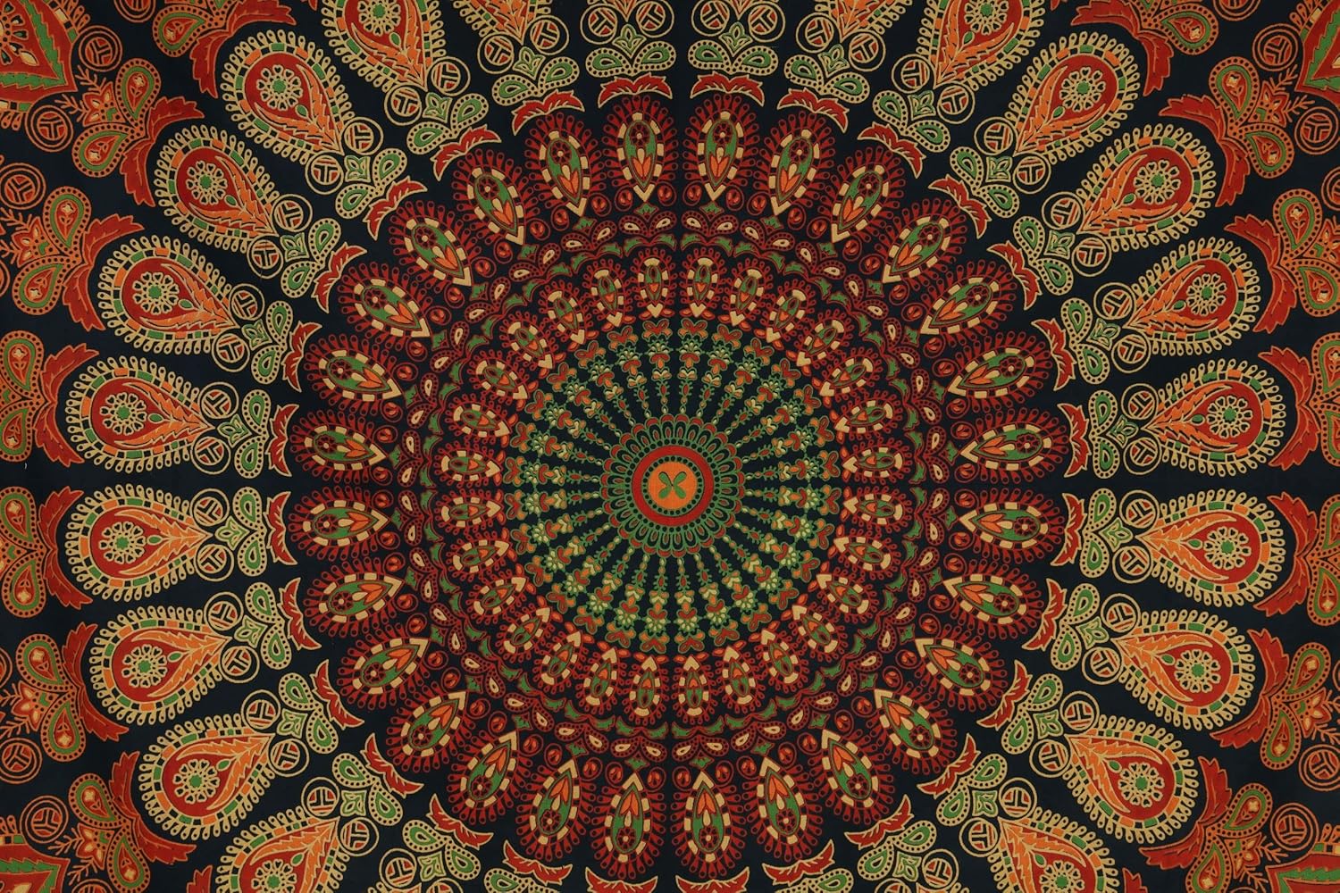 Bless International Handmade Indian hippie Bohemian Psychedelic Peacock Mandala Wall hanging College Dorm Beach Throws Table Cloth Bedding Tapestry (Golden Green, Twin(54x72Inches)(140x185cms))