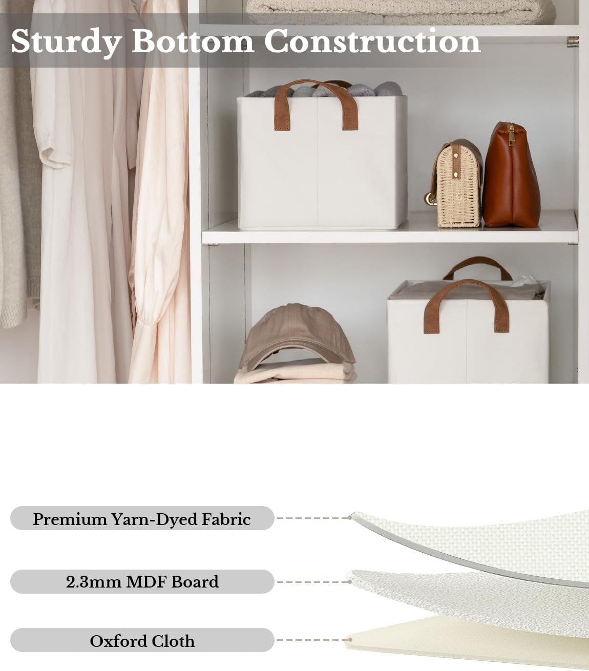 StorageWorks Storage Bins, Fabric Storage Bins for Shelves, Storage Baskets with Metal Frame, Closet Baskets and Bins with Handles, Beige, 2-Pack