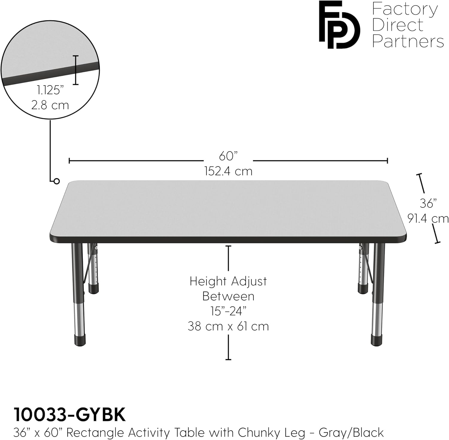 FDP Rectangle Activity School and Classroom Kids Table (36 x 60 inch), Toddler Leg, Adjustable Height 15-24 inches - Gray Top and Black Edge