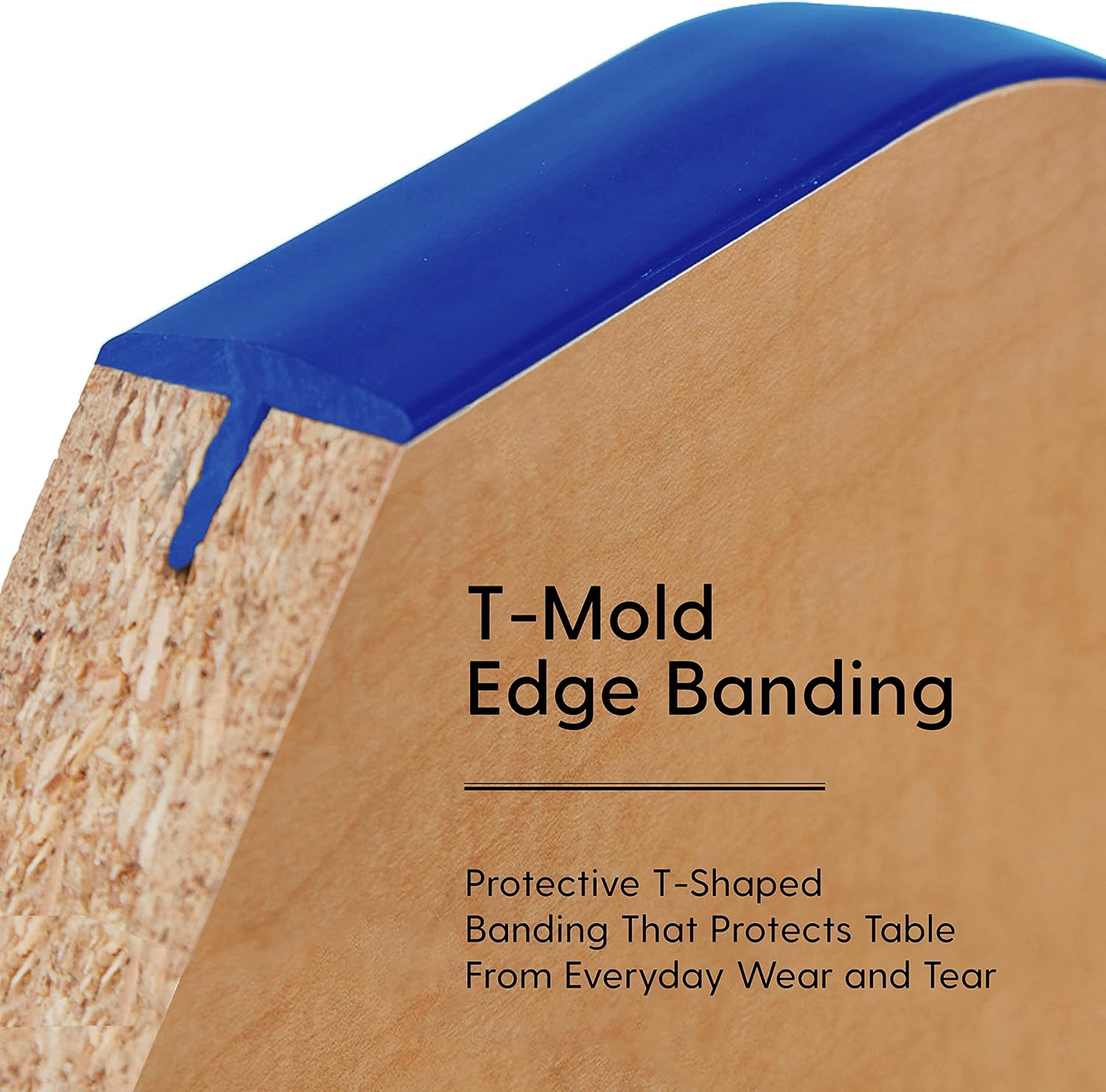 Factory Direct Partners FDP Rectangle Activity School and Classroom Kids Table (24 x 72 inch), Chunky Toddler Legs, Adjustable Table Height 15-24 inches - Maple Top and Blue Edge