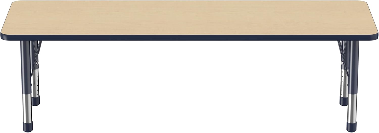 Factory Direct Partners FDP Rectangle Activity School and Classroom Kids Table (24 x 72 inch), Chunky Toddler Legs, Adjustable Table Height 15-24 inches - Maple Top and Navy Edge