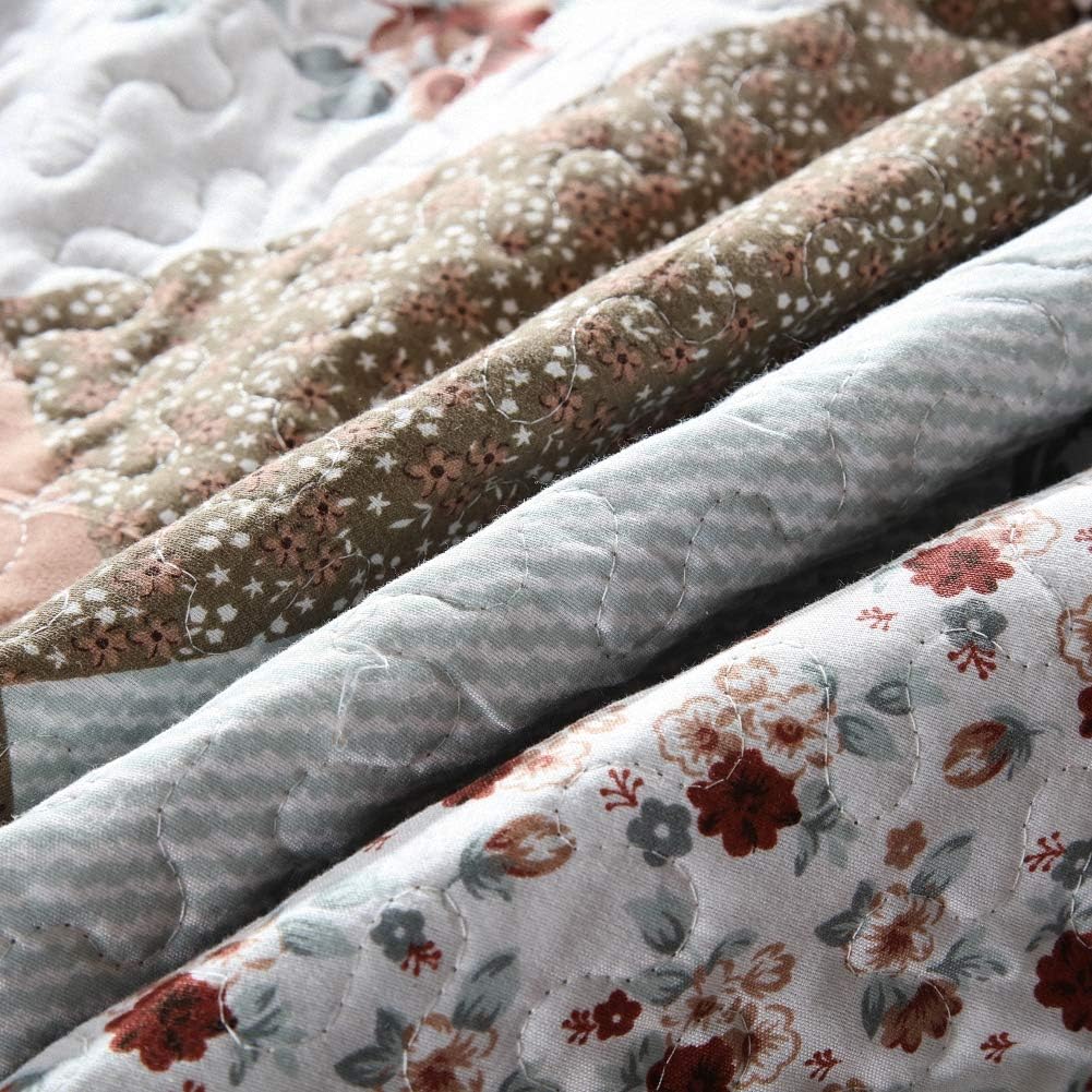 NEWLAKE Quilt Bedspread Sets-Checkered Floral Reversible Coverlet Set,Queen Size