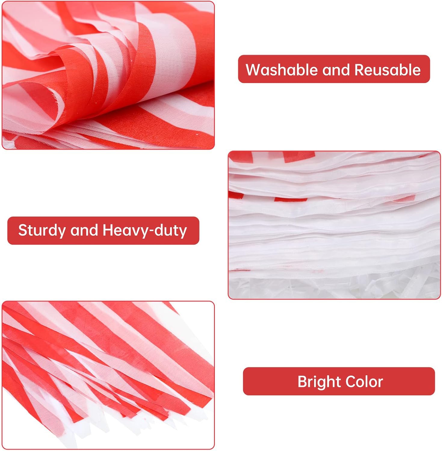 - Package Includes: 120 red and white striped banner flags, 60 flags per banner, a total of 2, each is 85 feet, a total length of 170 feet.