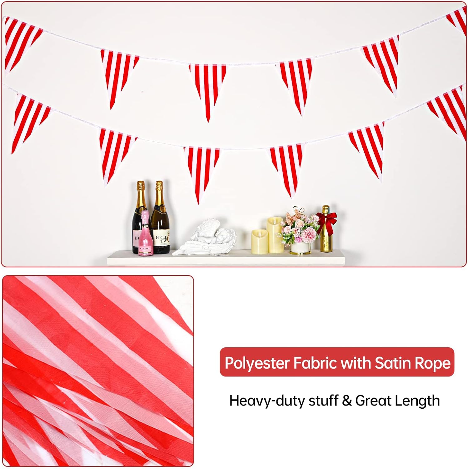 RUBFAC 170ft 120pcs Red and White Striped Pennant Banner, Carnival Circus Decorations Supplies, String Triangle Bunting Flags, Kids Birthday, New Year Eve Celebration Supplies