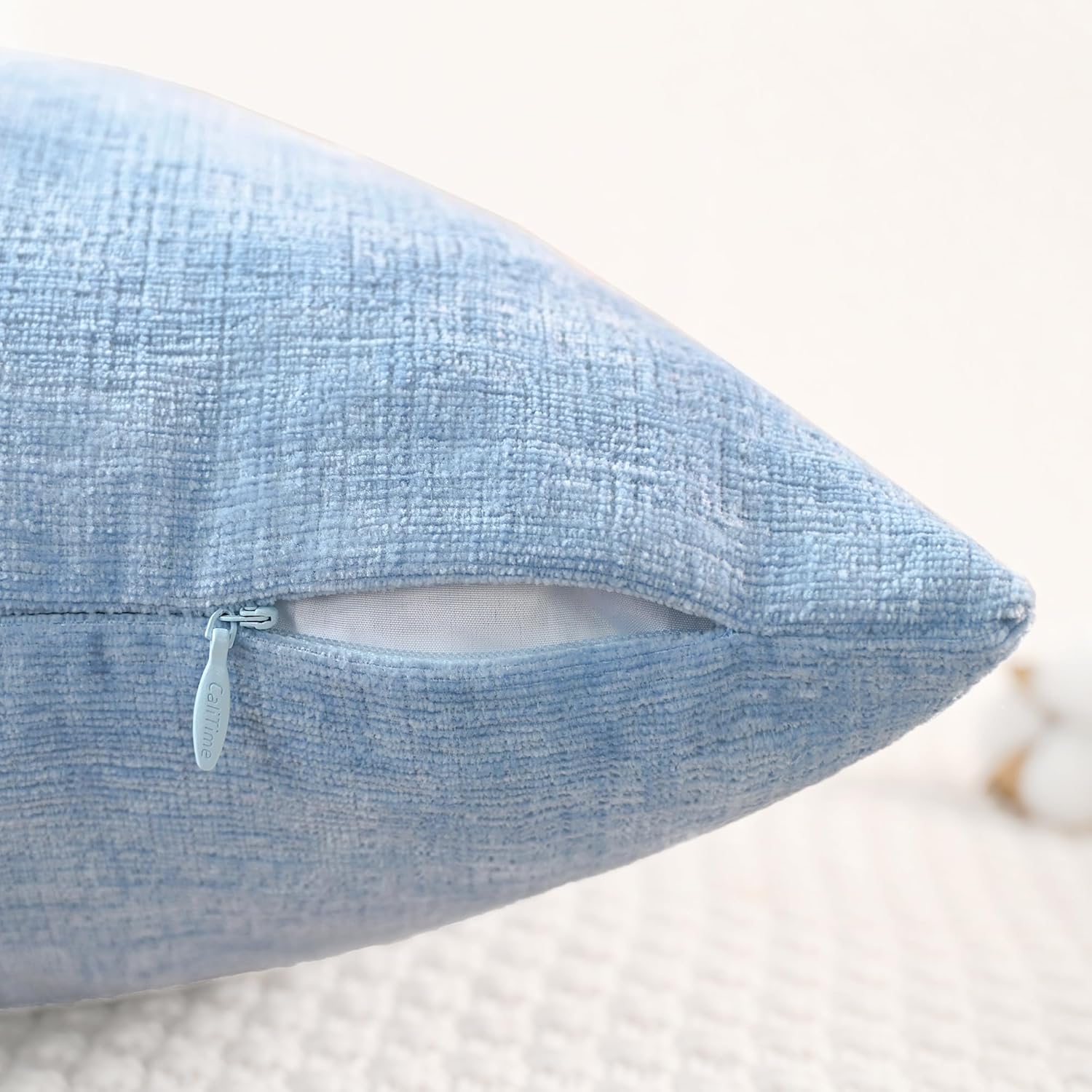 CaliTime Throw Pillow Covers Decorative 12 X 20 Inches Pack of 2 Cozy Chenille Cushion Cases for Couch Sofa Bed Living Room Home Baby Blue