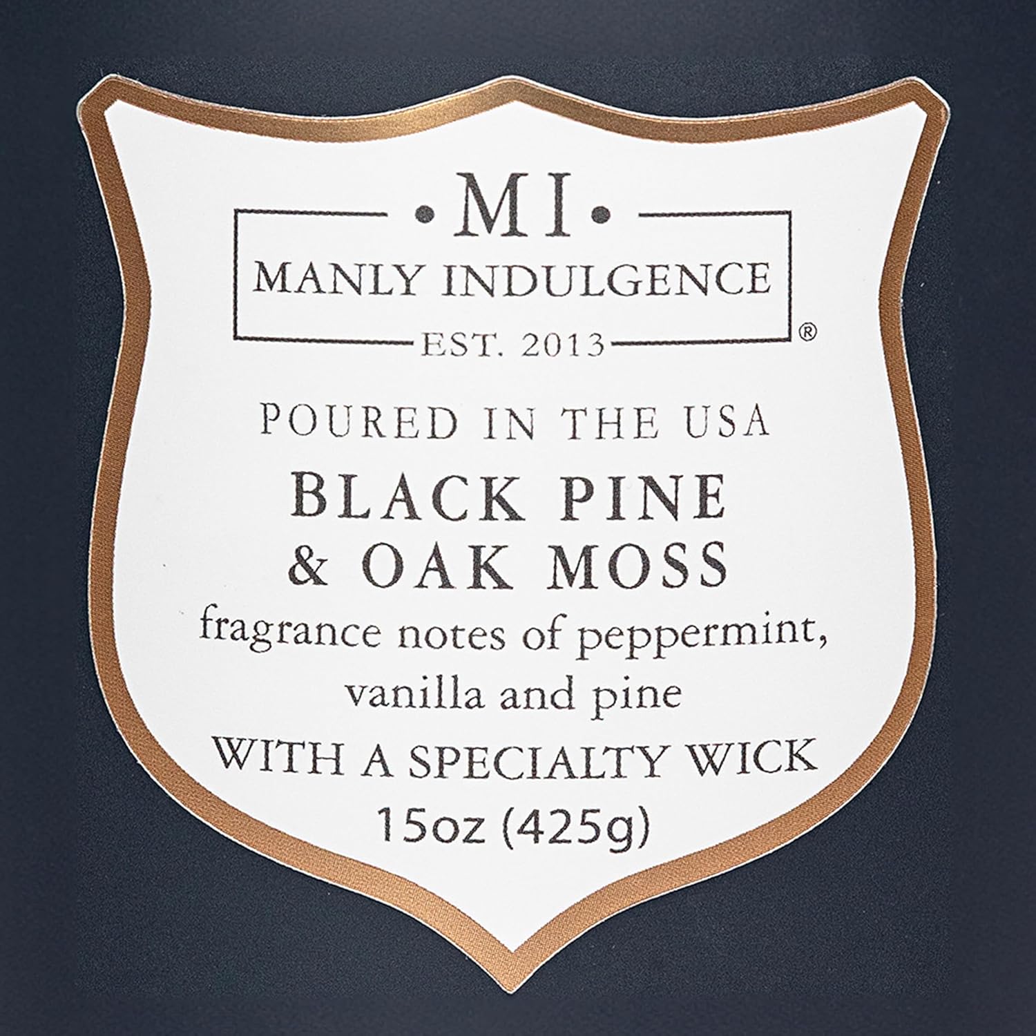 Manly Indulgence Black Pine Oakmoss Scented Candles for Men, 15 oz Wooden Wick, Premium Soy Blend Wax, 60H Burn, Candles for Home Scented - Made in The USA