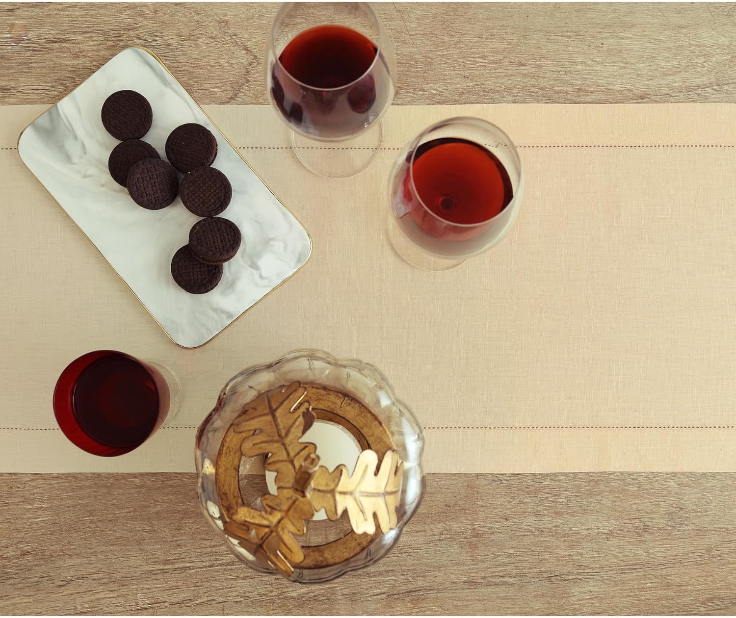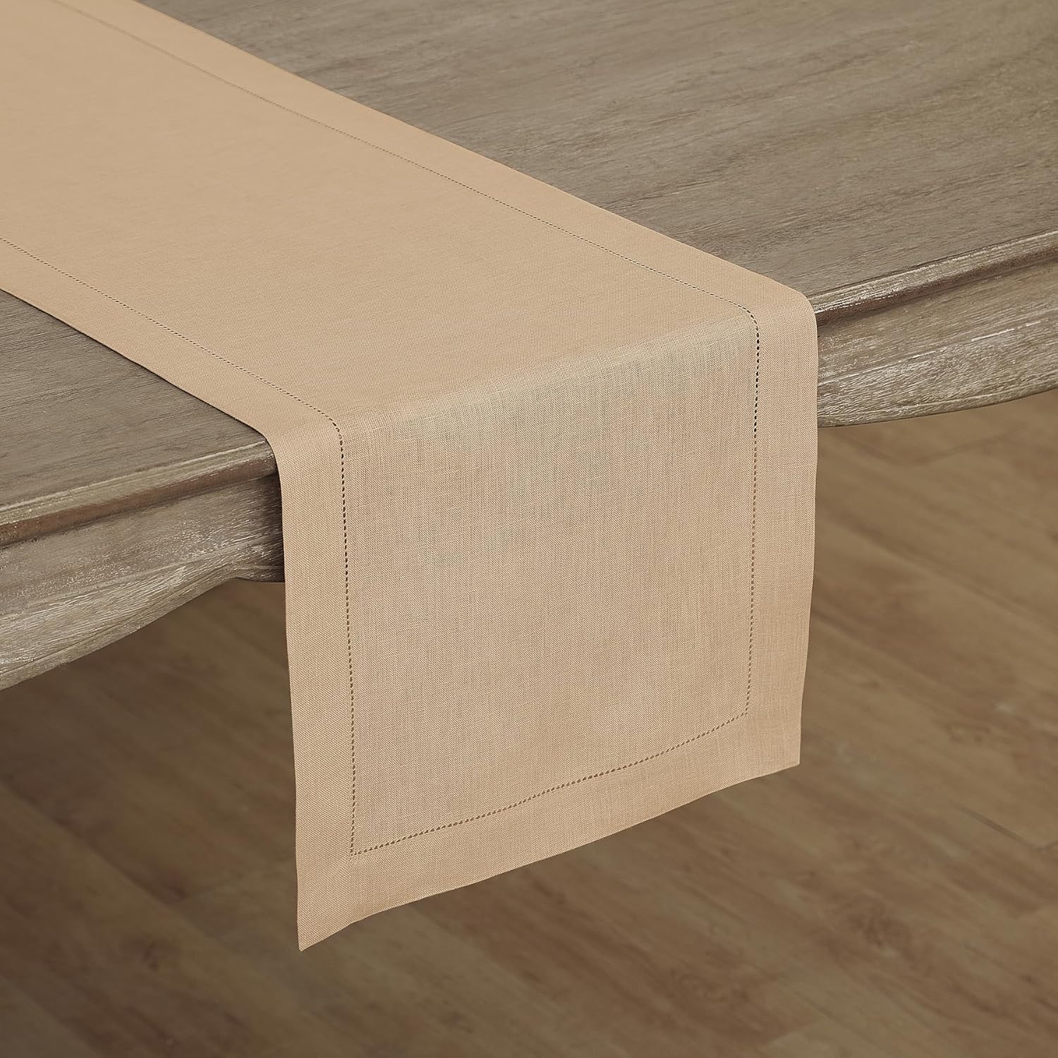 Solino Home Linen Beige Table Runner 108 Inches Long - 100% Pure Linen 14 x 108 Inch Table Runner for Fall, Autumn, Thanksgiving - Classic Hemstitch