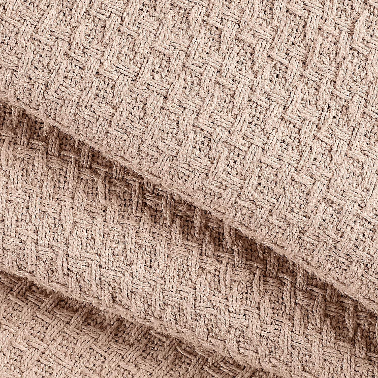 Elvana Home 100% Cotton Bed Blanket, Breathable Bed Blanket Twin Size, Cotton Thermal Blankets Twin, Perfect for Layering Any Bed for All Season, Beige