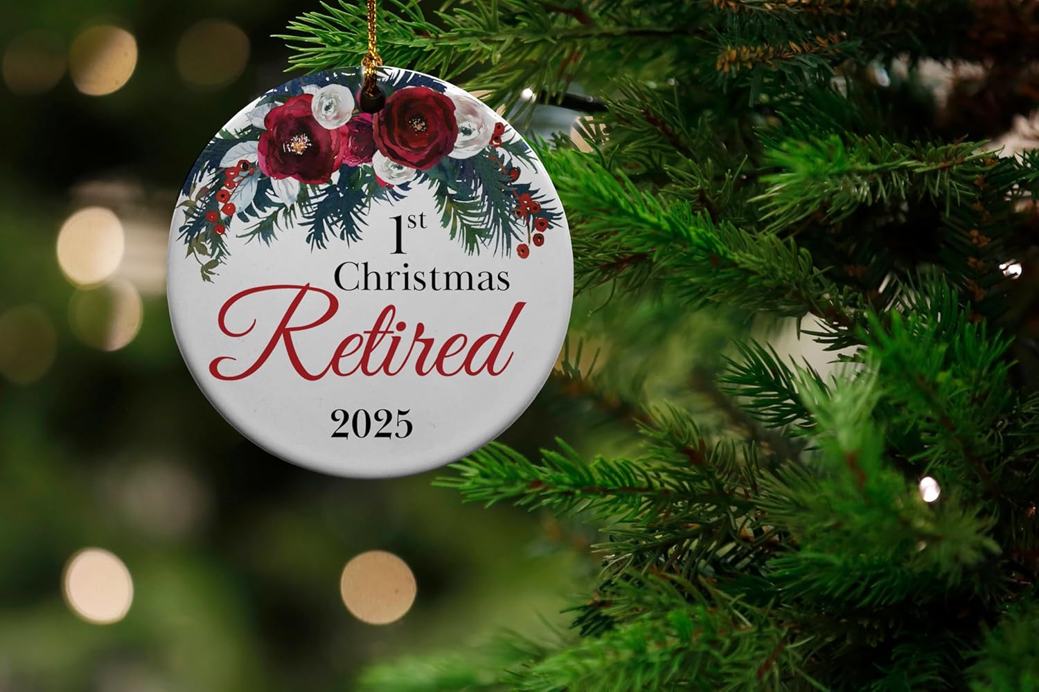 1st Retired Christmas Ceramic Christmas Tree Ornament Collectible Holiday Keepsake 2.875" Round Ornament in Decorative Gift Box with Bow- Perfect Retirement Gifts for Women or Men!