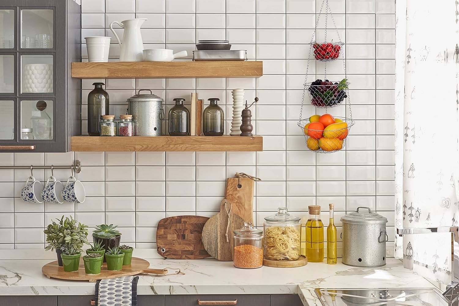 - Versatility: This 3 tier hanging basket is suitable for various settings, such as kitchens, bathrooms, pantries, or even outdoor spaces like balconies or patios.