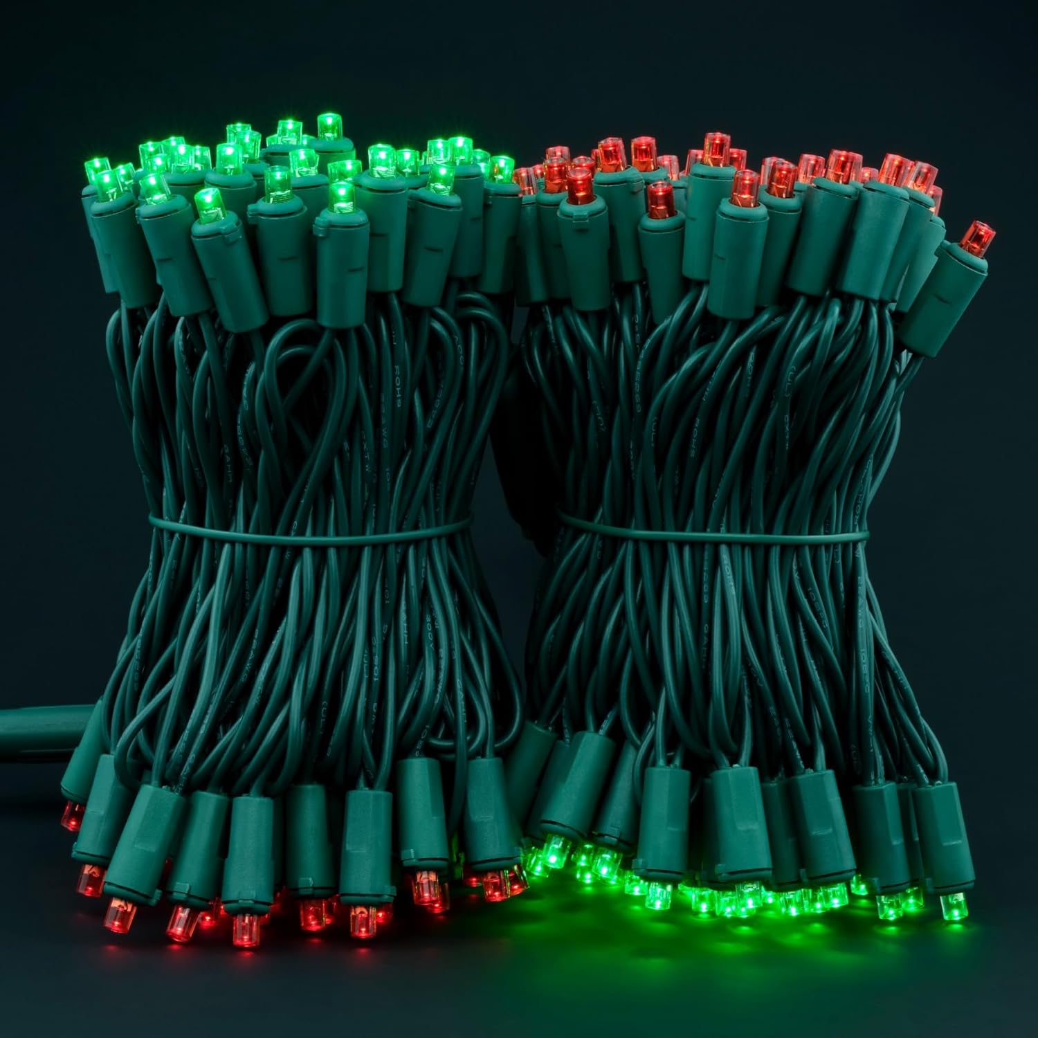 - Red-Green Interval β Featuring 200 red & green 5mm LED bulbs, with 4-inch spacing, the red and green lights are arranged in intervals between each other. Red and green constitute the main colors of Christmas, and they are Christmas lights that will never go out of style. The wide angle bulbs feature multi-angle light source technology, providing a wide and even distribution of light. The independent light heads allow the light to diverge at multiple angles, ensuring that no corner of your Christ