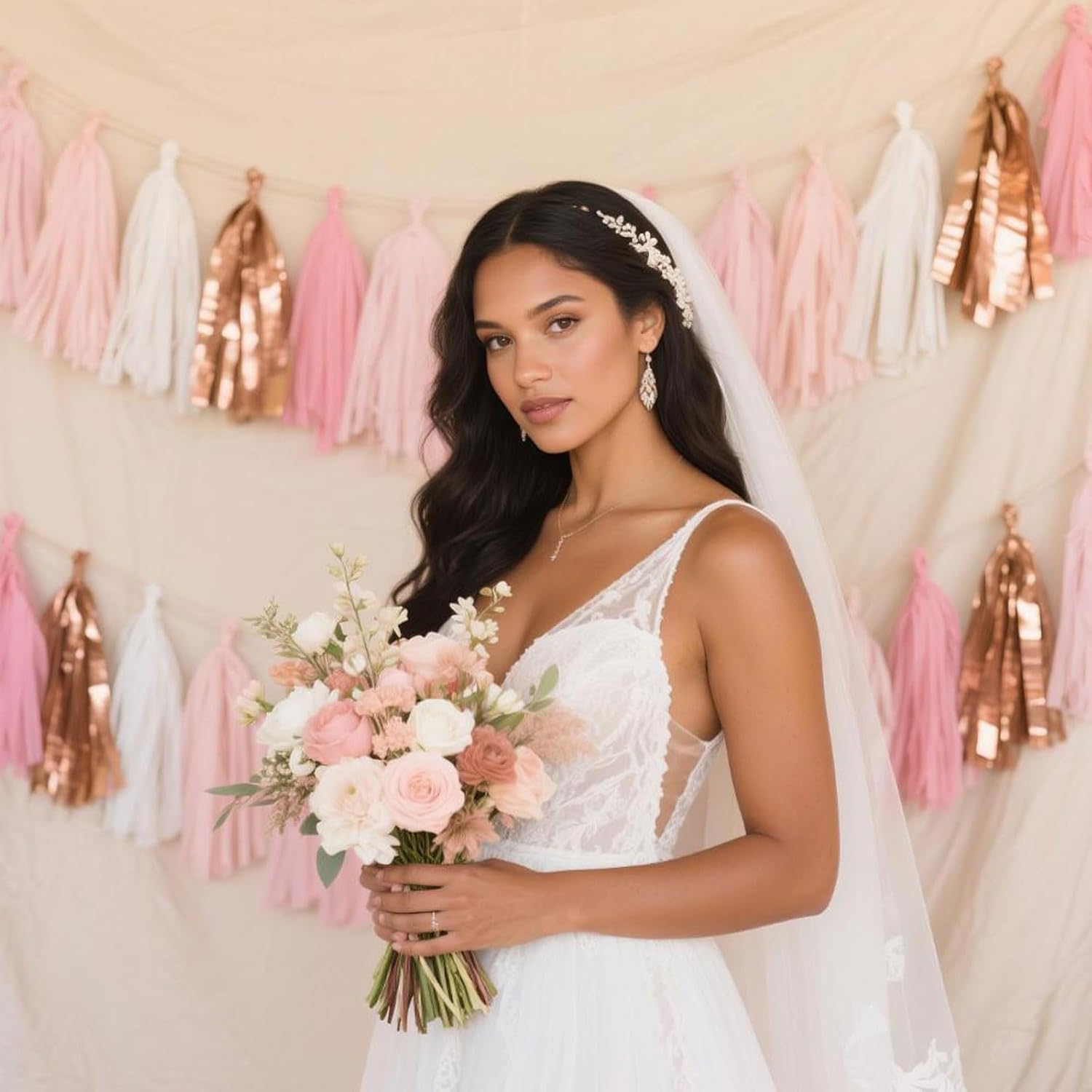 Rose Gold Peach White Pink Tassel Garland Banner, 20 Pack, Tassel Garland Party Decorations for Birthday, Boho Music Festival, Baby Shower,Bridal,Wedding